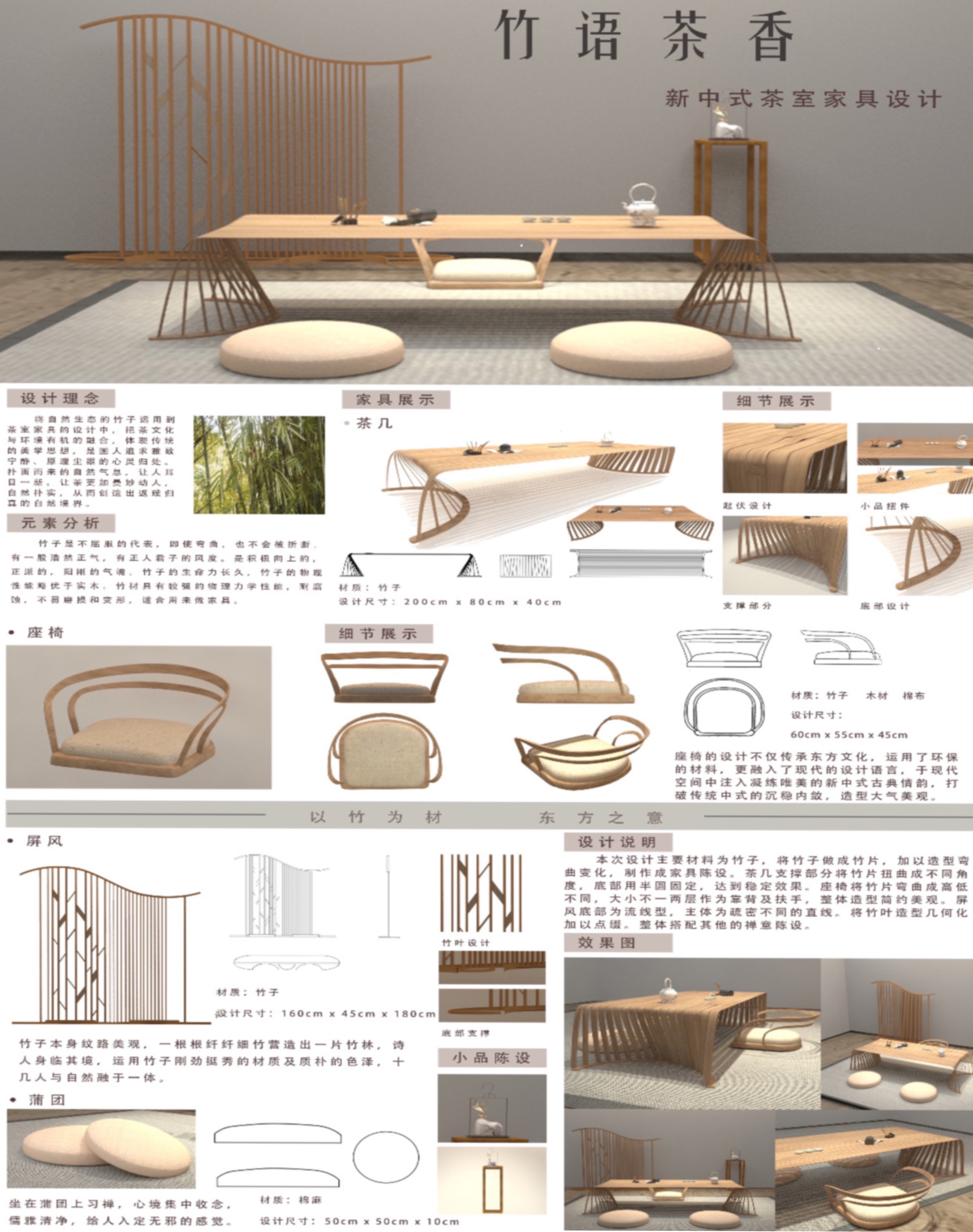 将自然生态的竹子运用到茶室家具的设计中,把茶文化与环境有机的融合,体现传统的美学思想,是国人追求雅致宁静、原理尘器的心灵归处。扑面而来的自然气息,让人耳目一新 让茶更加曼妙动人,自然朴实,从而创造出返璞归真的自然境界。