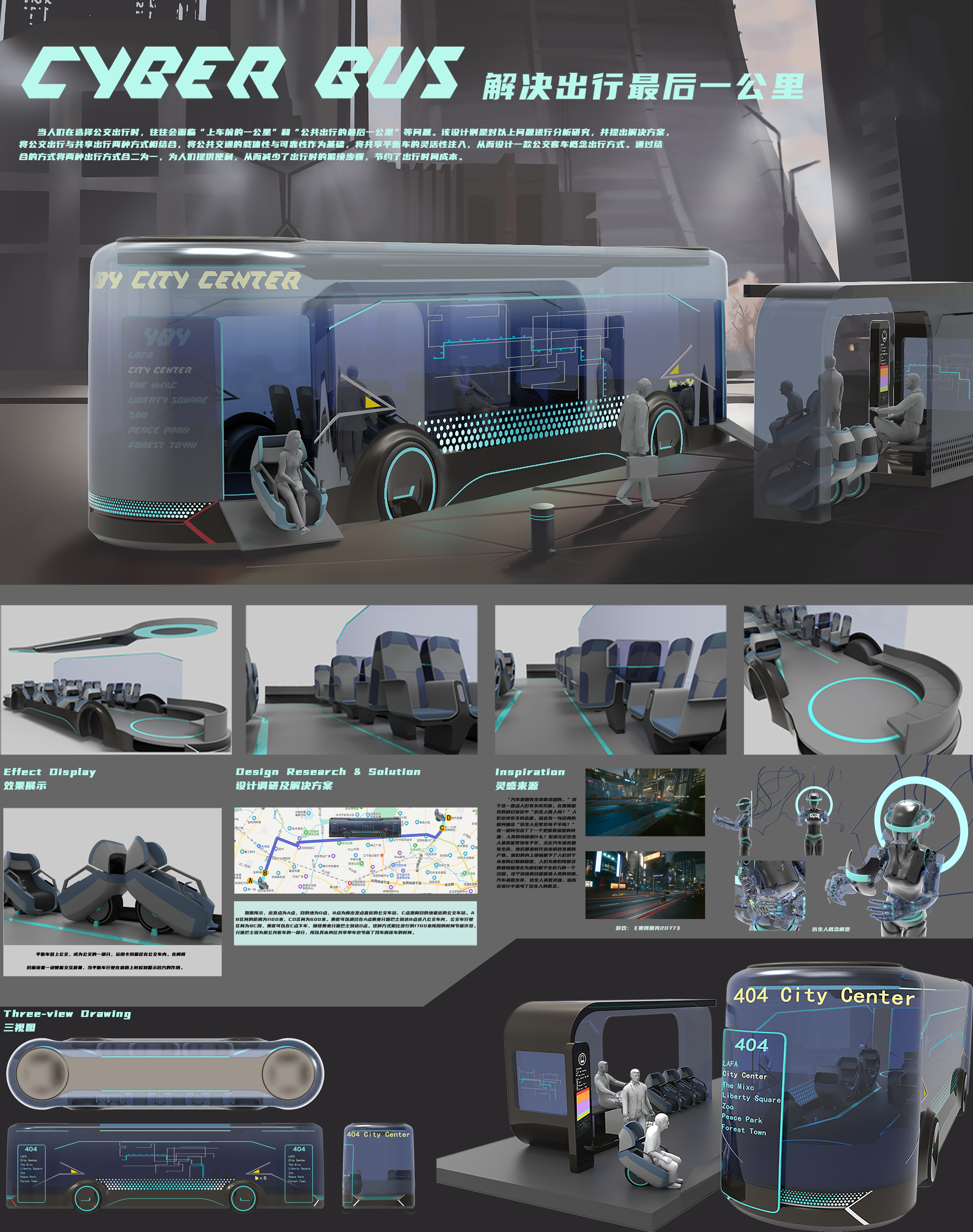 当人们在选择公交出行时,往往会面临“上车前的一公里”和“公共出行的最后一公里”等问题。该设计则是对以上问题进行分析研究,并提出解决方案,将公交出行与共享出行两种方式相结合,将公共交通的载体性与可靠性作为基础,将共享平衡车的灵活性注入,从而设计一款公交客车概念出行方式。通过结合的方式将两种出行方式合二为一,为人们提供便利,从而减少了出行时的繁琐步骤,节约了出行时间成本。