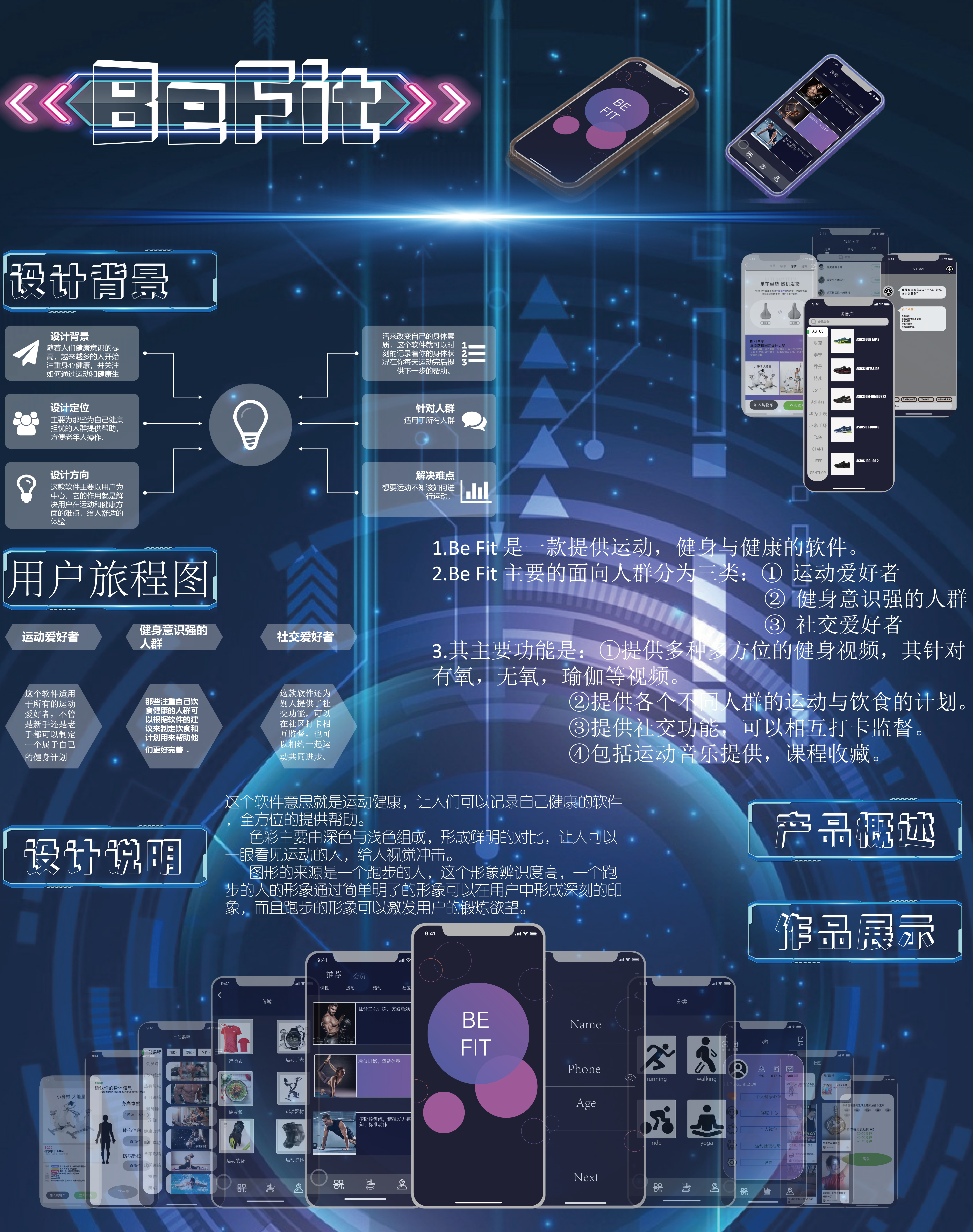 这个软件意思就是运动健康,让人们可以记录自己健康的软件,全方位的提供帮助。 色彩主要由深色与浅色组成,形成鲜明的对比,让人可以一眼看见运动的人,给人视觉冲击。 图形的来源是一个跑步的人,这个形象辨识度高,一个跑步的人的形象通过简单明了的形象可以在用户中形成深刻的印象,而且跑步的形象可以激发用户的锻炼欲望。