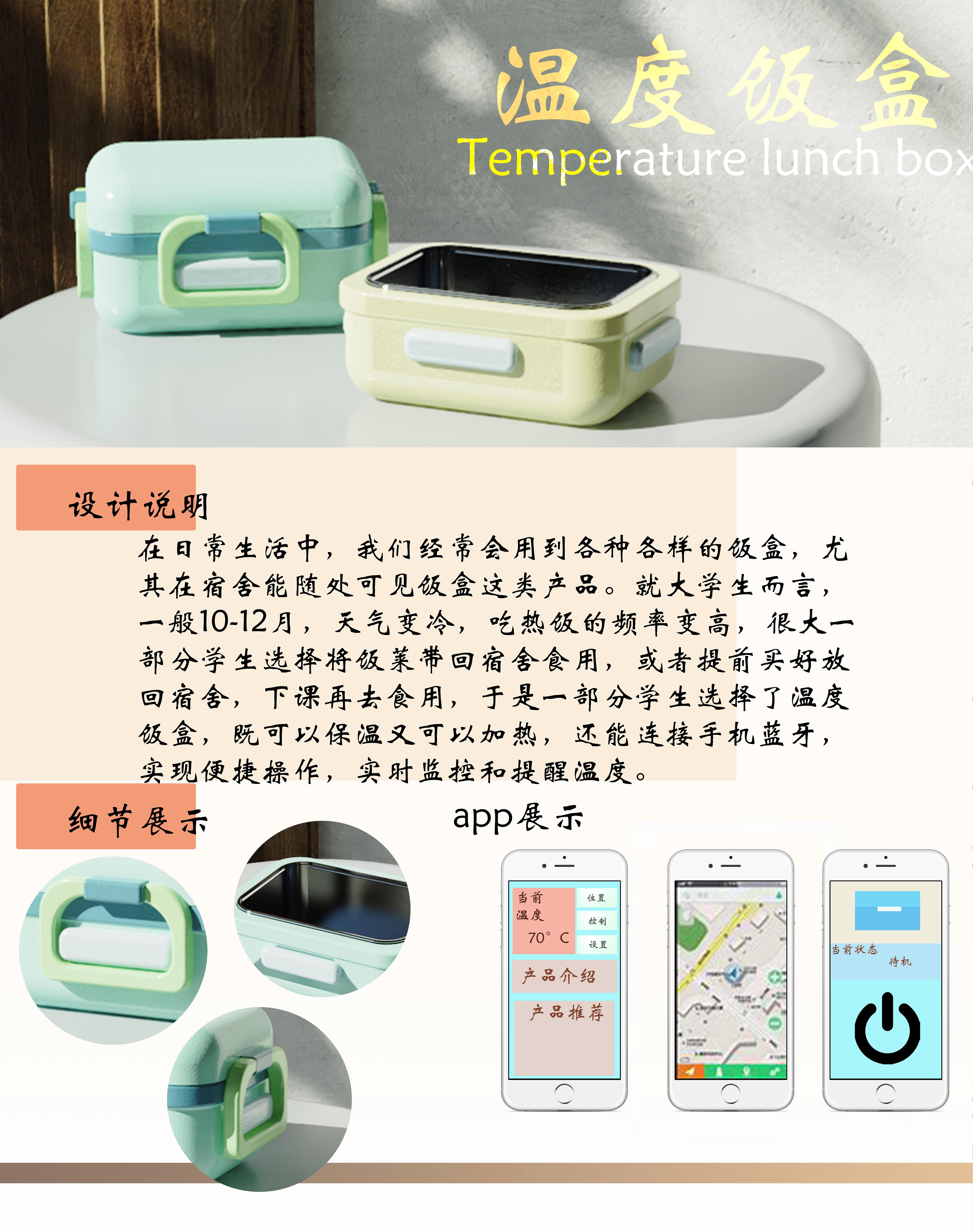 在日常生活中,我们经常会用到各种各样的饭盒,尤其在宿舍能随处可见饭盒这类产品。就大学生而言,一般10-12月,天气变冷,吃热饭的频率变高,很大一部分学生选择将饭莱带回宿舍食用,或者提前买好放回宿舍,下课再去食用,于是一部分学生选择了温度饭盒,既可以保温又可以加热,还能连接手机蓝牙,实现便捷操作,实时监控和提醒温度。