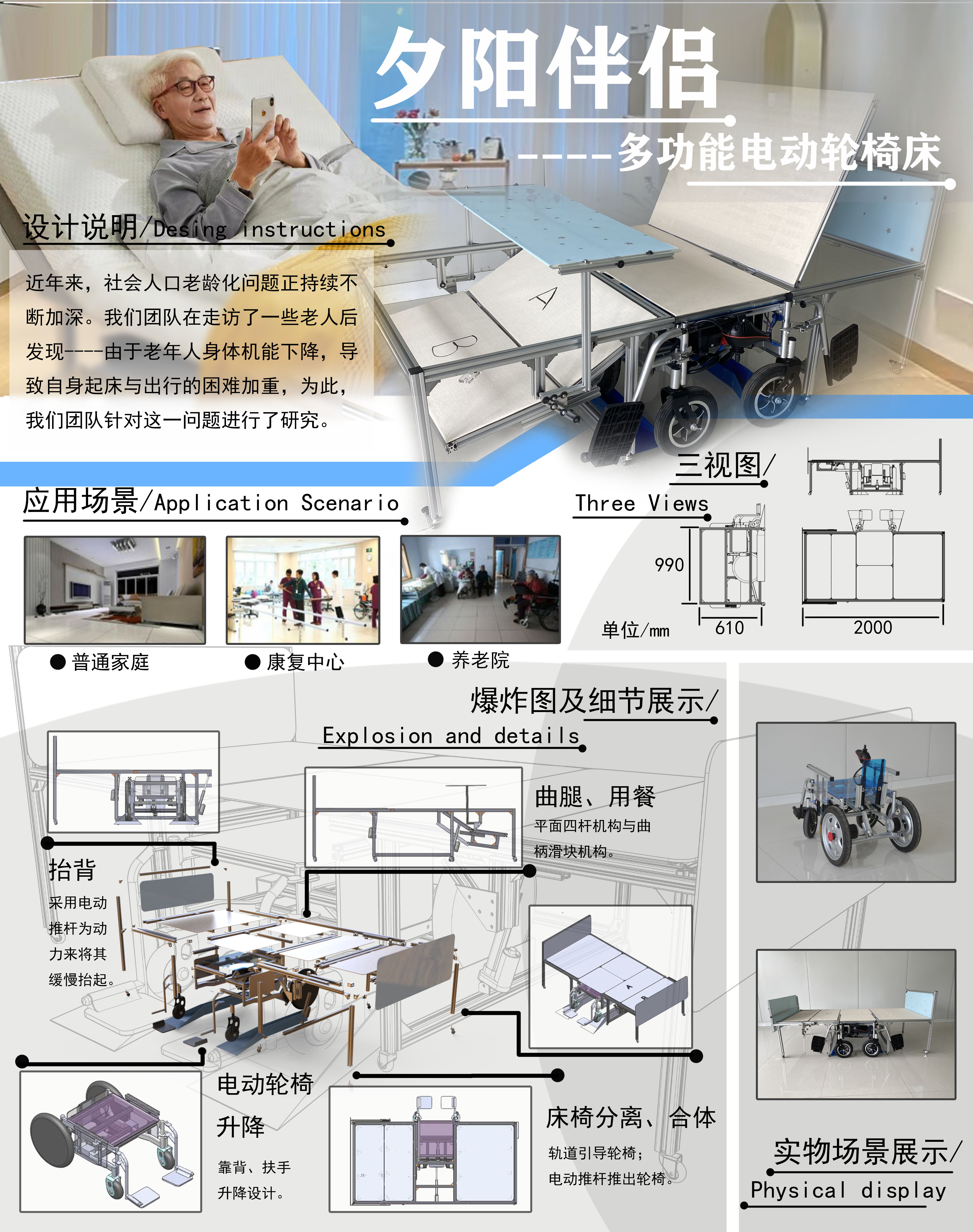 夕阳伴侣——多功能电动轮椅床