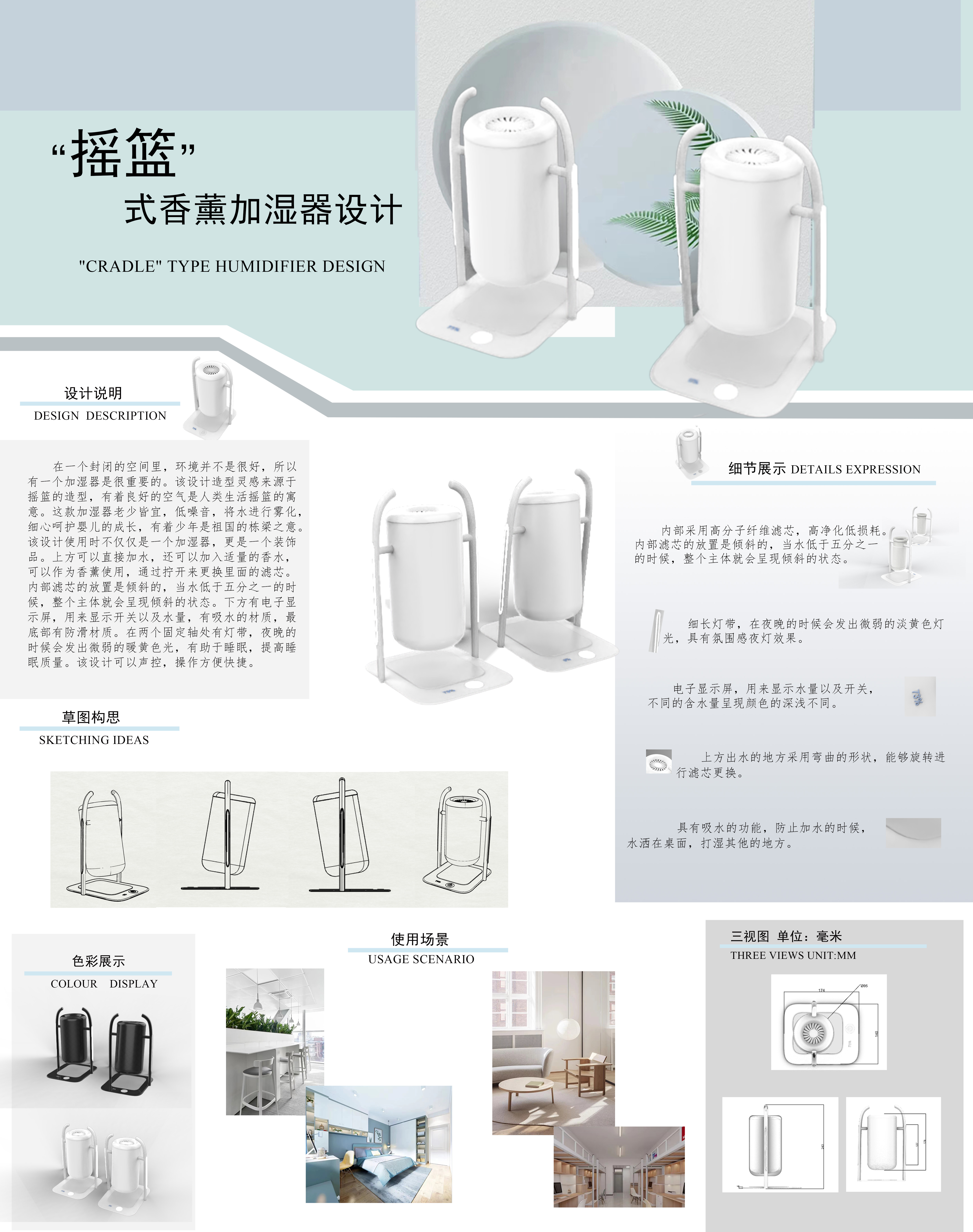 该产品灵感来源于婴儿摇篮,满水时呈垂直状态,水量变少时逐渐倾斜直至大于45度,以此来暗示人们水量的多少,将余量可视化