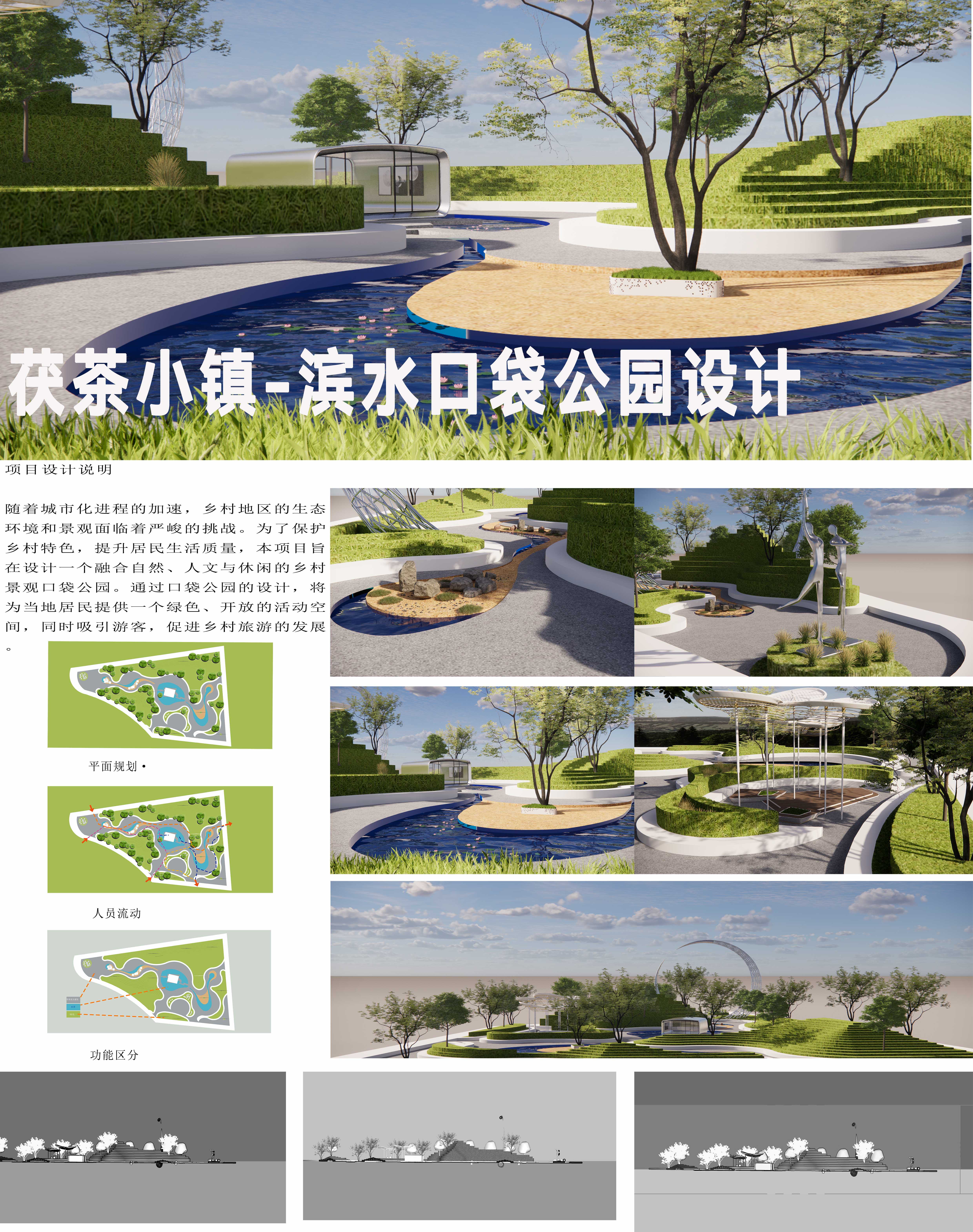 本设计以乡村振兴为背景,旨在通过茯茶小镇口袋公园的建设,提升乡村环境品质,丰富村民的文化生活,吸引更多游客前来游览。口袋公园是一种小而精的公园形式,它利用闲置或低效利用的用地,如村边、田边、水边等,进行景观改造和功能提升,使之成为村民和游客休憩、游玩的好去处。