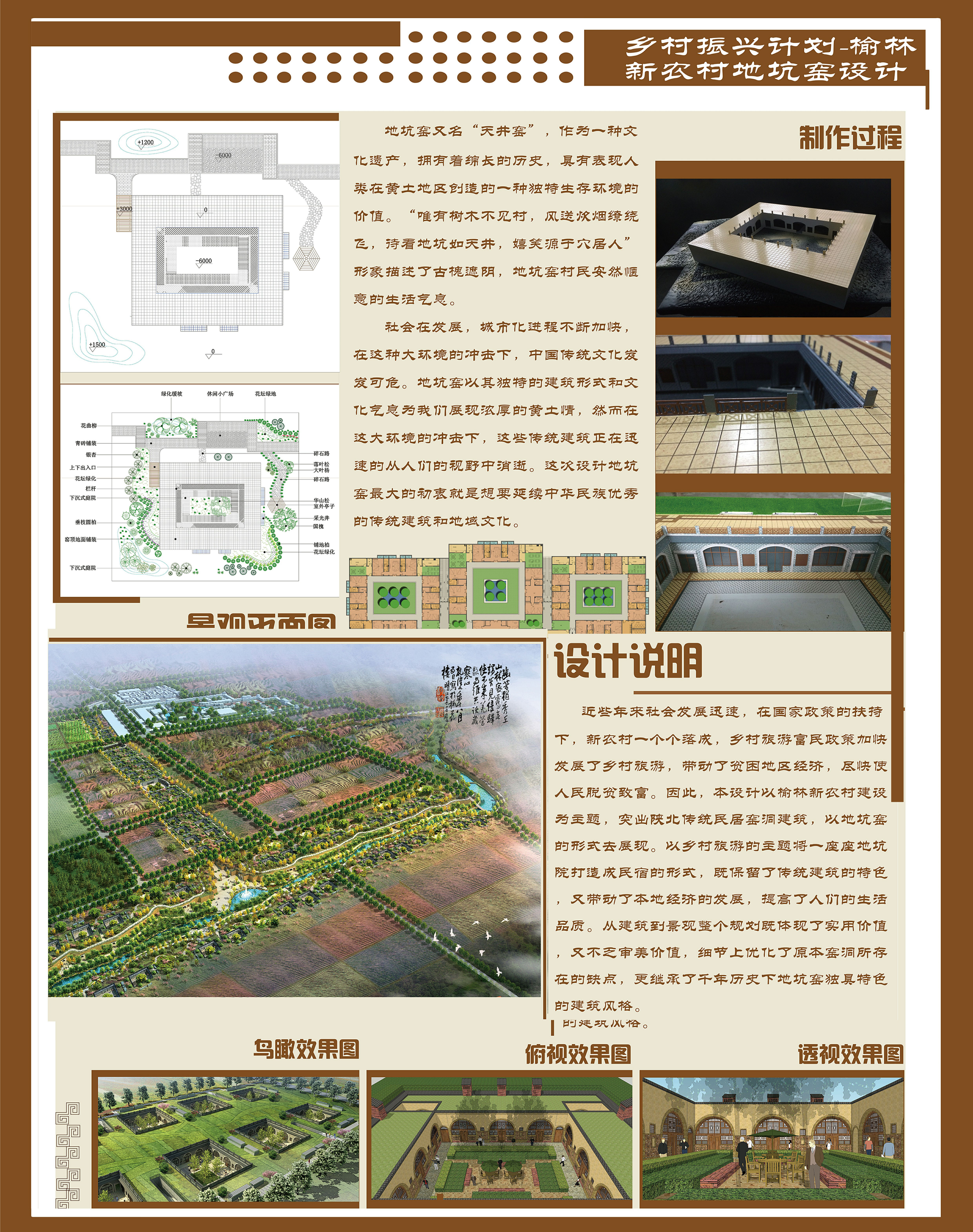 近些年来社会发展迅速,在国家政策的扶持,乡村旅游富民政策加快发展了乡村旅游,带动了贫困地区经济,尽快使人民脱贫致富。因此,本设计以榆林新农村建设为主题,突出陕北传统民居窑洞建筑现。既保留了传统建筑的特色,又带动了本地经济的发展,提高了人们的生活品质。从建筑到景观整个规划既体现了实用价值,又不乏审美价值,细节上优化了原本窑洞所存在的缺点,更继承了千年历史下地坑窑独具特色的建筑风格。