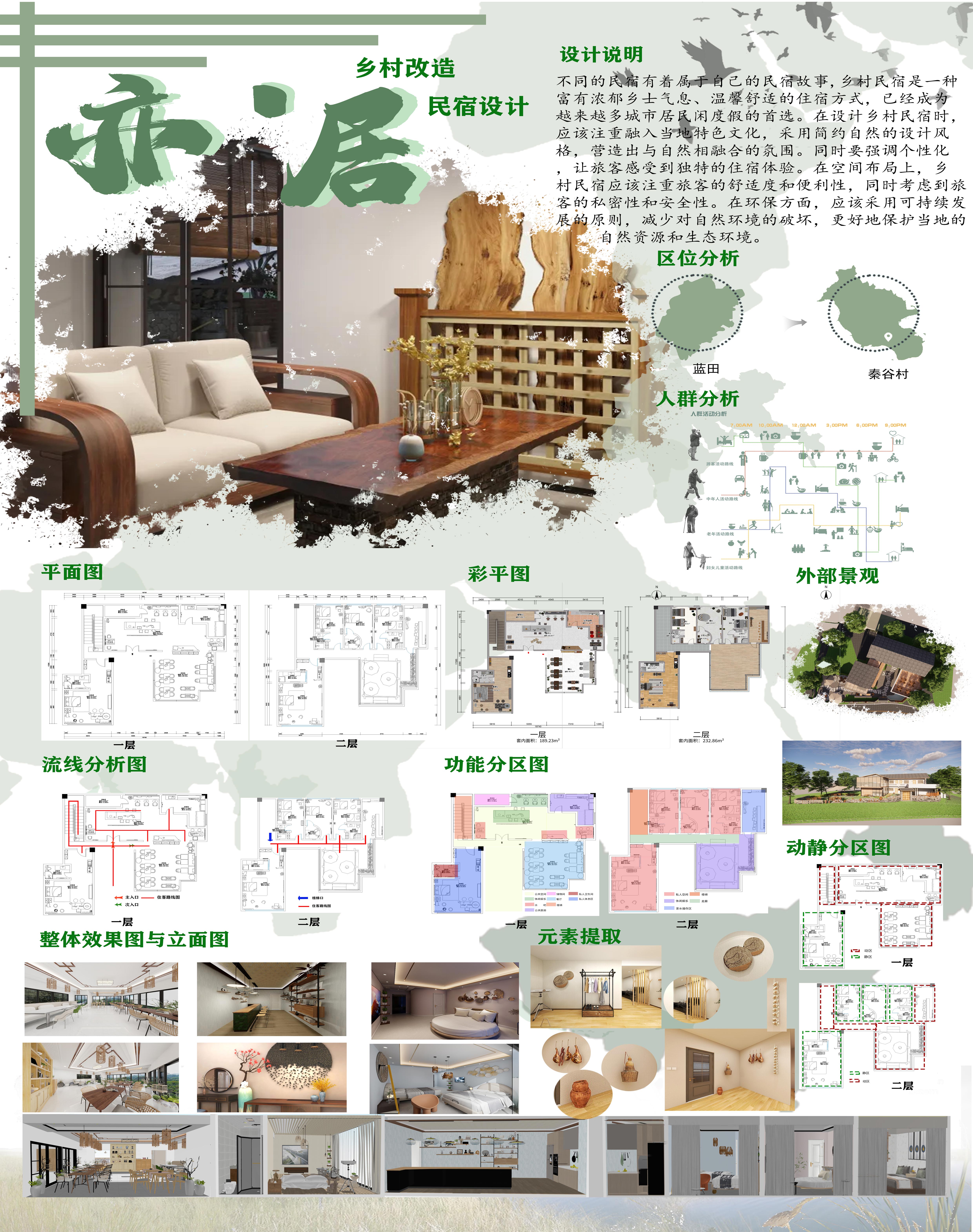 不同的民宿有着属于自己的民宿故事,并成为越来越多城市居民闲度假的首选。在乡村民宿设计时应该注重融入当地特色文化,采用简约自然的设营造出与自然相融合的氛围。同时要强调个计风格,性化,让旅客感受到独特的住宿体验。在空间布局上民宿应该注重旅客的舒适度和便利性,同时考虑到旅客的私密性和安全性。在环保方面,应该采用可持续发展的原则,减少对自然环境的破坏,更好地保护当地的自然资源和生态环境。