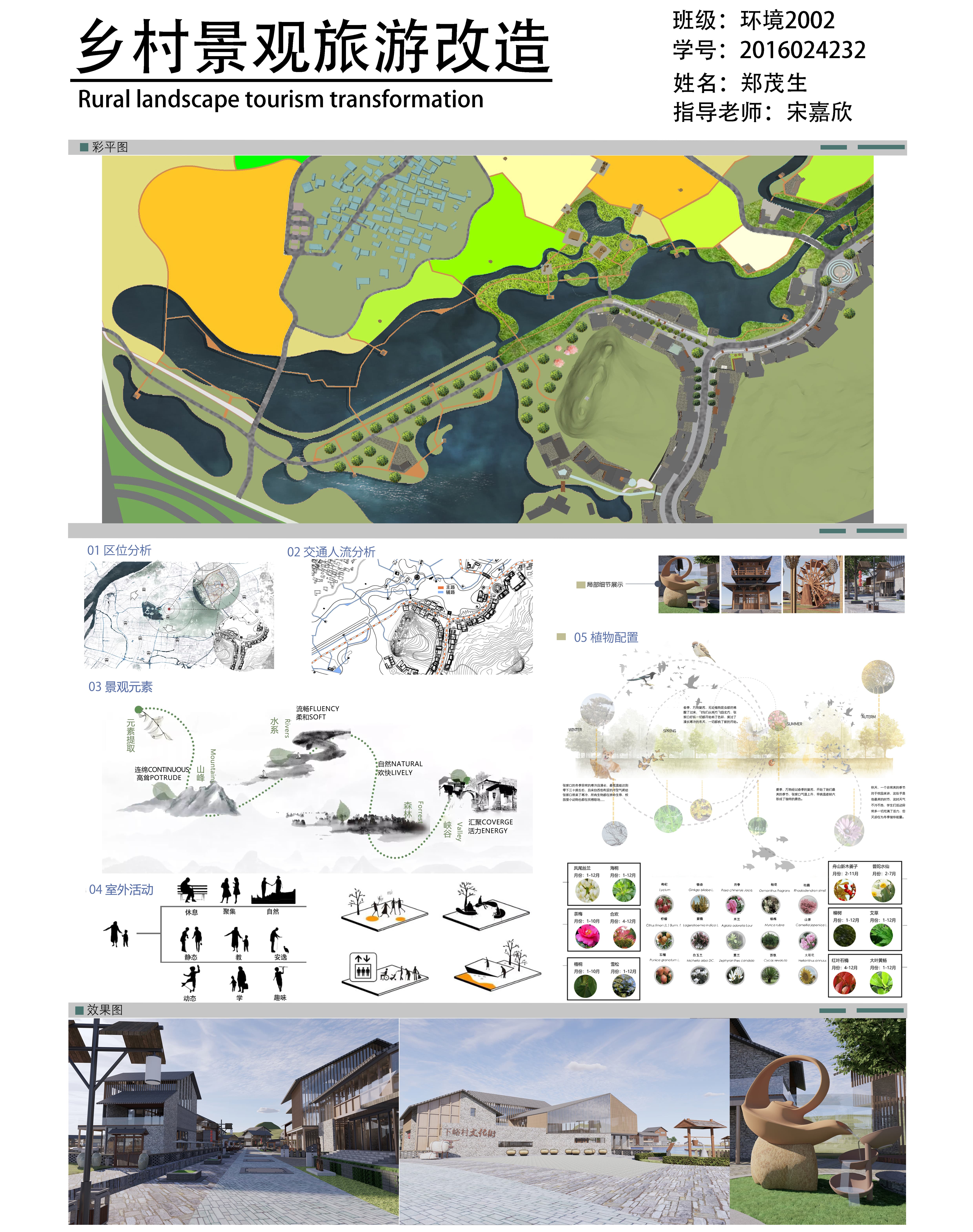 本次设计旨在提升乡村旅游景观的品质和吸引力,强调回归自然、传承文化和绿色生活的理念。通过保护和增强自然景观,挖掘和传承乡村文化,以及提升旅游设施质量,我们希望能够为游客提供一个更加美好的乡村旅游体验。设计将运用借景、对比、引导和融合等手法,创造与自然和谐共生的乡村景观,并展现乡村特色和文化元素。预期效果是提升乡村旅游的吸引力和促进绿色旅游的发展。