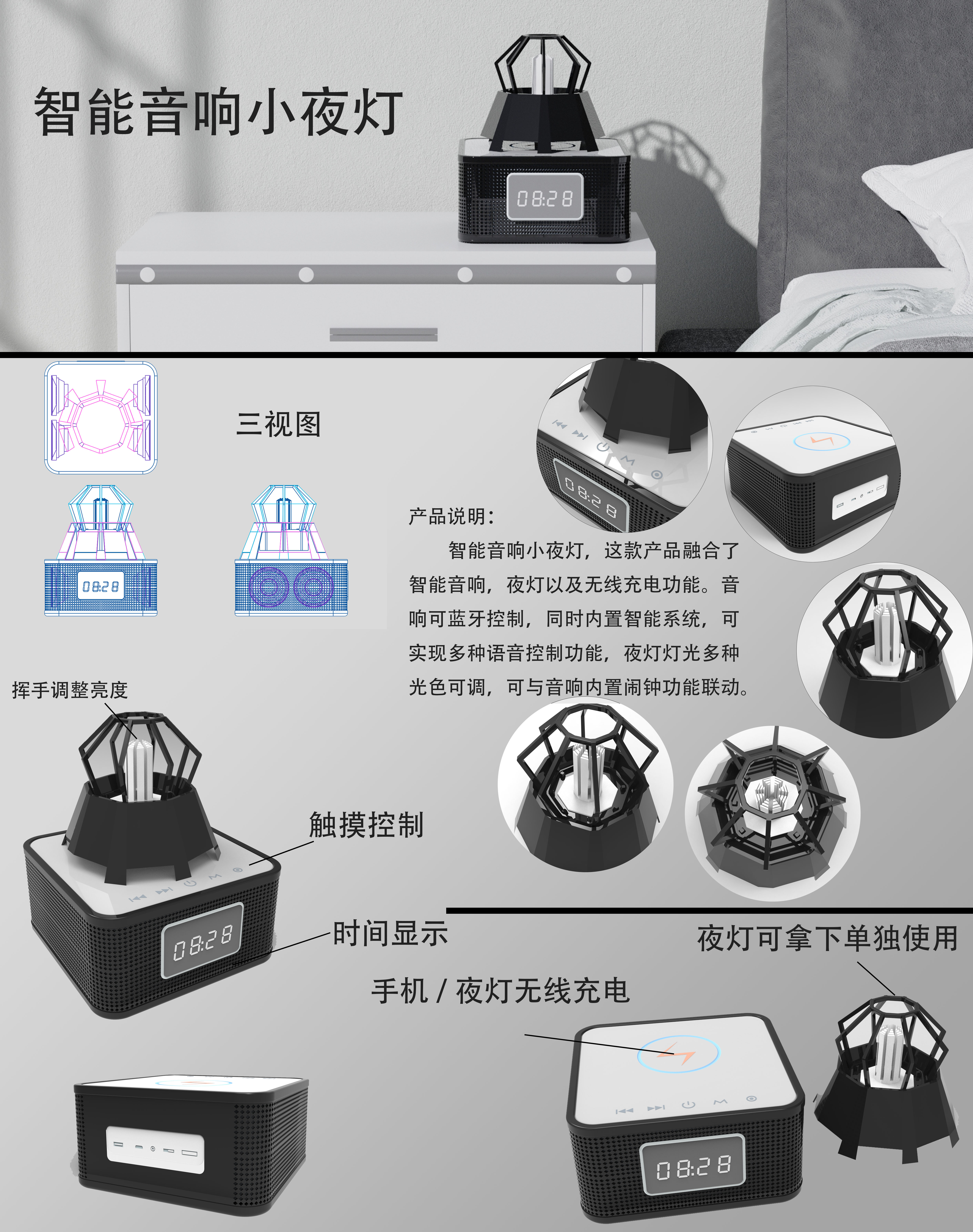 一款智能音响小夜灯,将常见的智能音响与小夜灯融合;