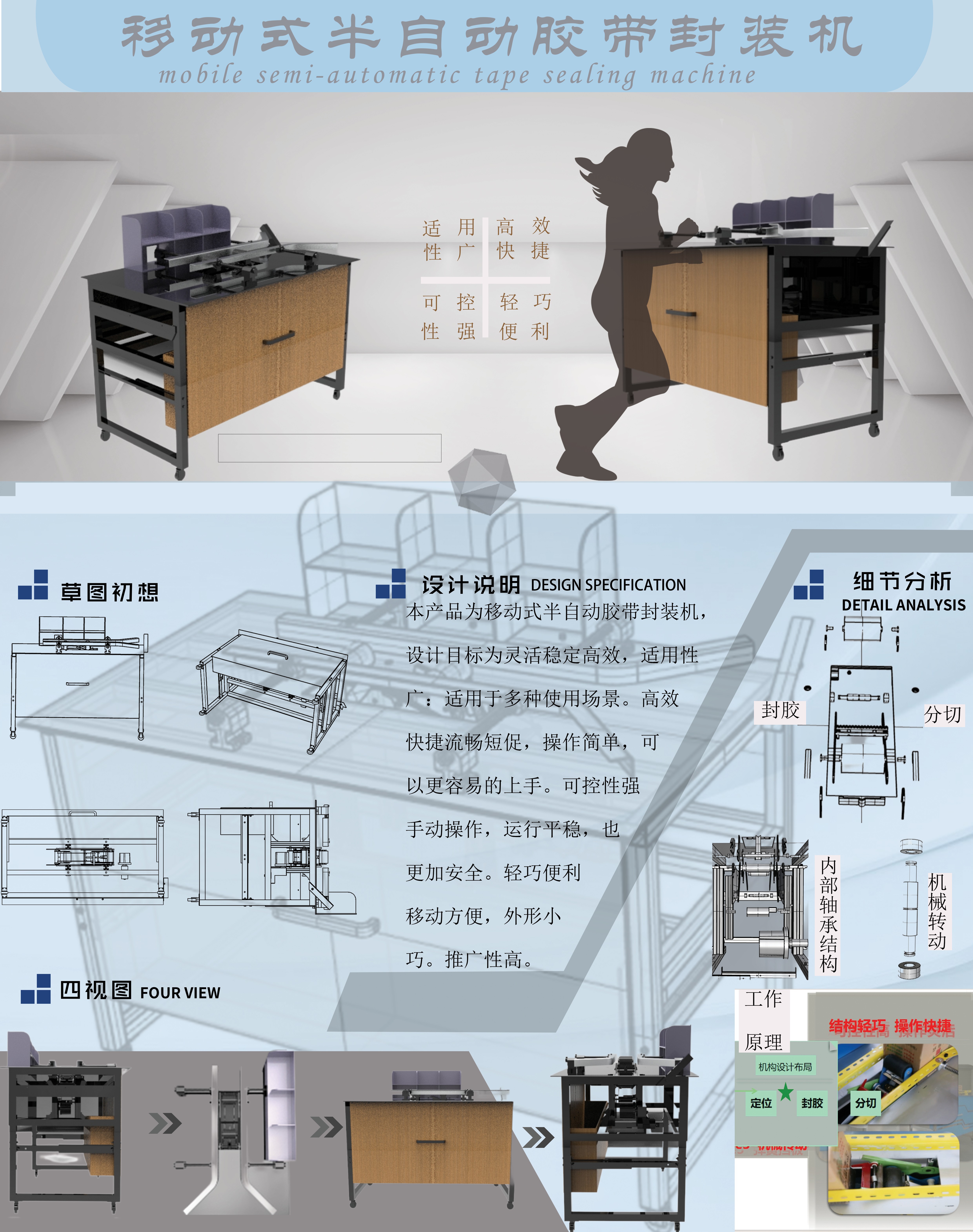 随着电子商务的发展, 快递包装的发货量越来越大,劳动强度高,包装缓慢。以及包装机适用范围的局限和控制运动系统复杂成为人们长期以来的困扰。 为解决上述问题,提高包装效率,有效减轻包装时的劳动强度,我团队对包装机械进一步深化了解,从力学、运动学和机械结构进行分析,简化设备的复杂程度,减小占用空间,并能长期稳定使用,提高包装效率,适应市场需求,使其在生活中得到更广泛的应用。