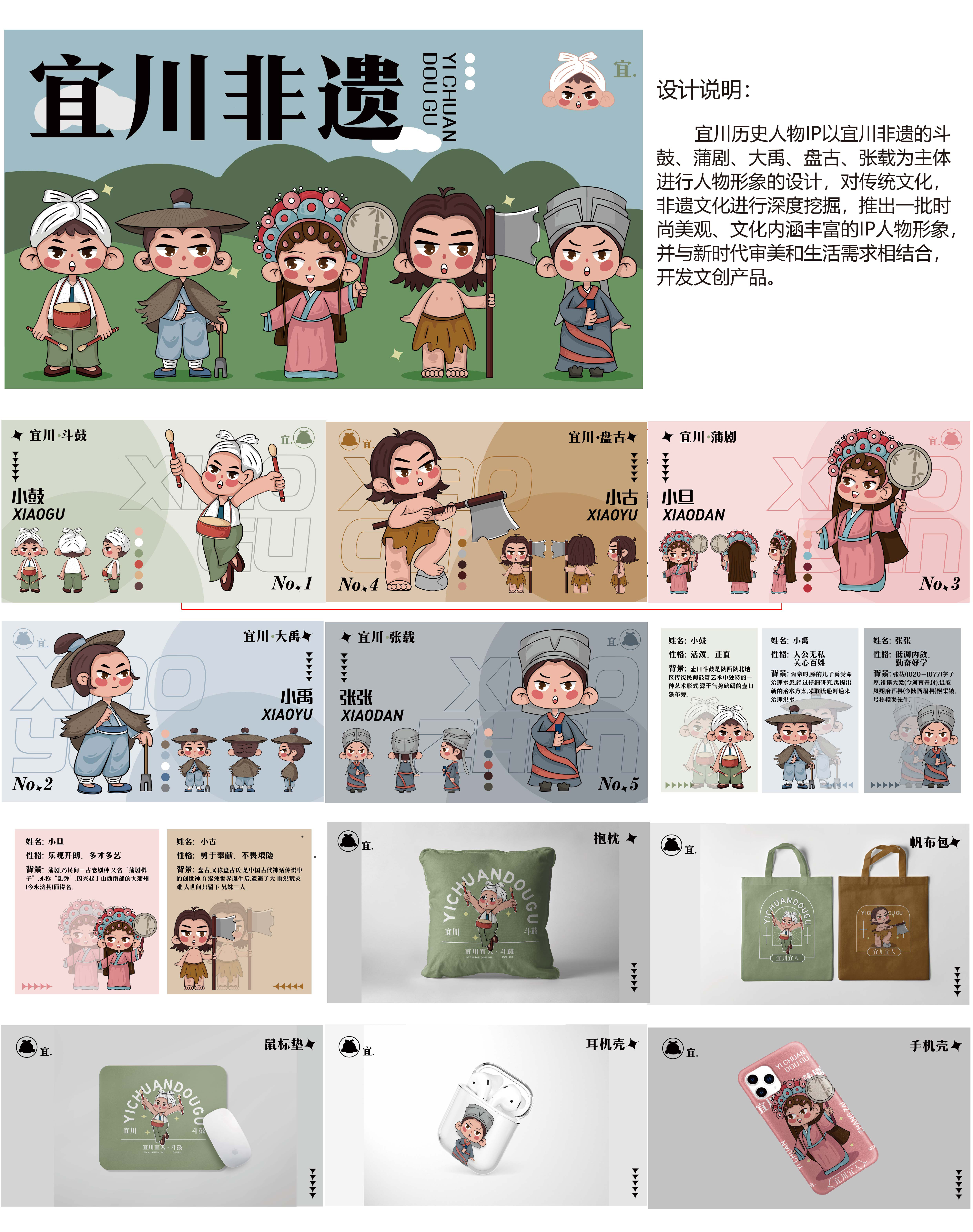 宜川历史人物IP以宜川非遗的斗鼓、蒲剧、大禹、盘古、张载为主体进行人物形象的设计,对传统文化,非遗文化进行深度挖掘,推出一批时尚美观、文化内涵丰富的IP人物形象,并与新时代审美和生活需求相结合,开发文创产品