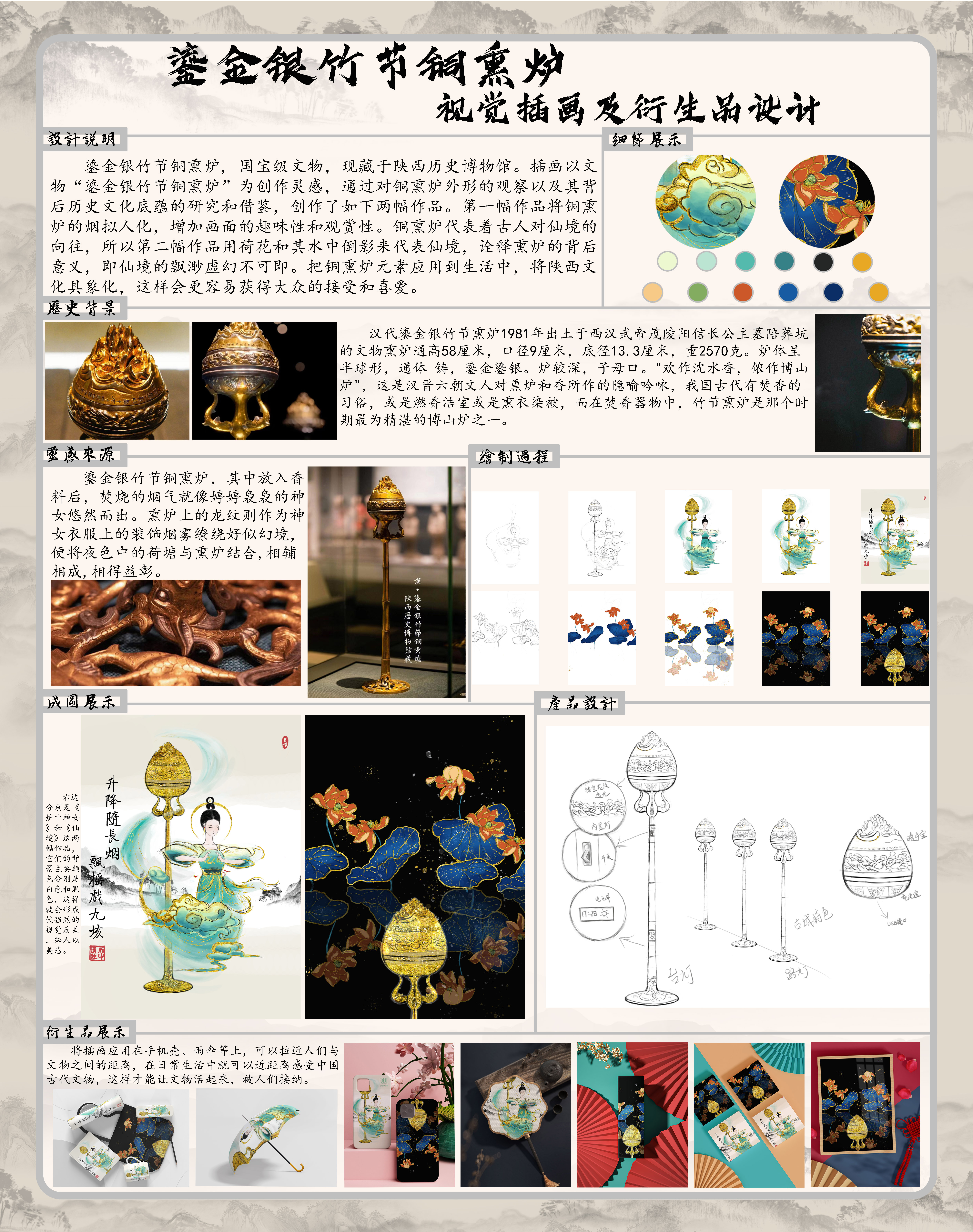 “鎏金银竹节铜熏炉”视觉插画及衍生品设计