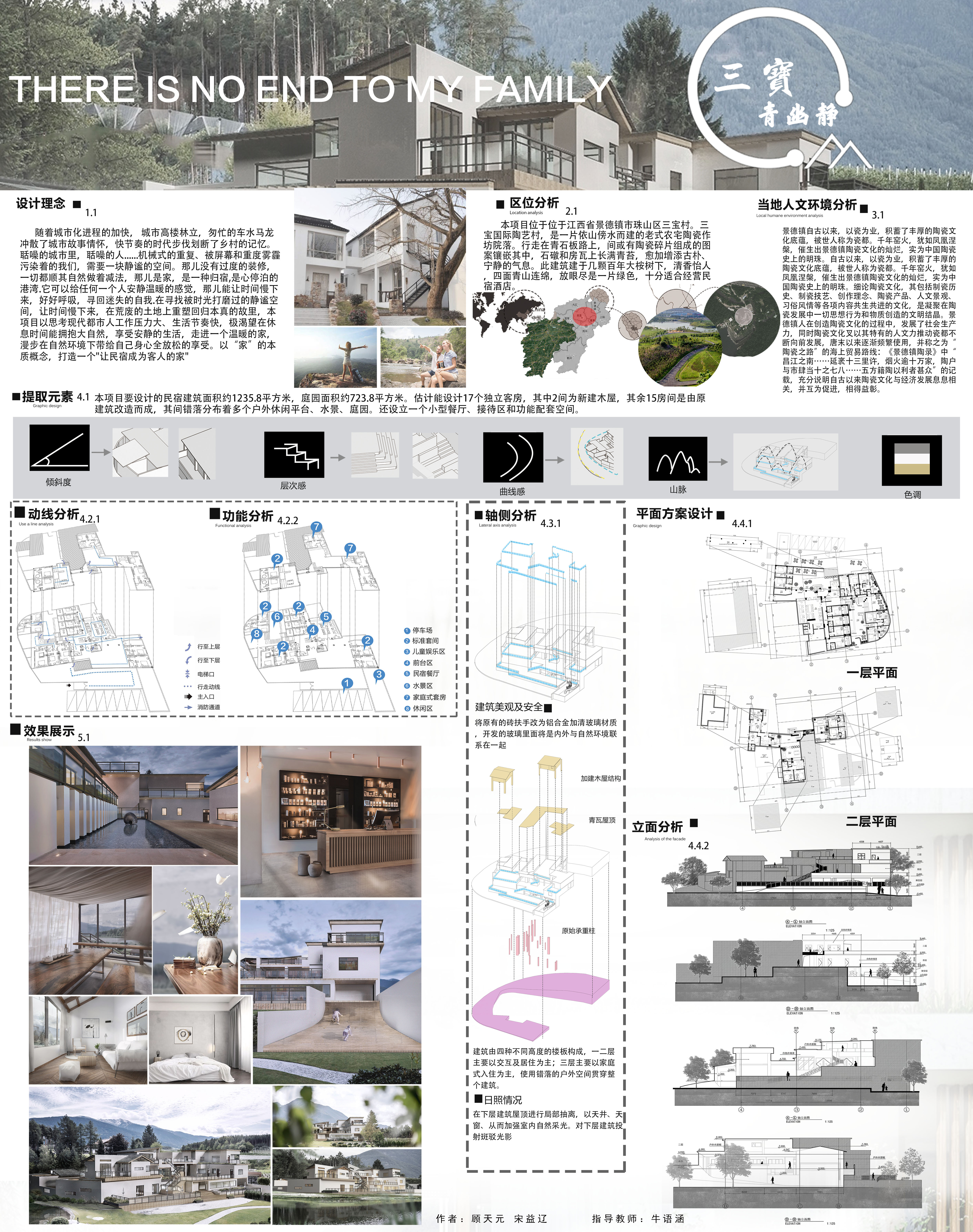 随着城市化进程的加快,匆忙的车水马龙冲散了城市故事情怀,快节奏的时代步伐划断了乡村的记忆。家,是一种归宿,是心停泊的港湾.可以给人安静温暖的感觉,在寻找被时光打磨过的静谧空间,回归本真的故里,本项目以思考现代人工作压力大、生活节奏快,渴望在休息时间能拥抱大自然享受安静的生活,走进一个温暖的家,在自然环境下带给自己身心全放松的享受。以“家”的本质概念,打造一个"让民宿成为客人的家"