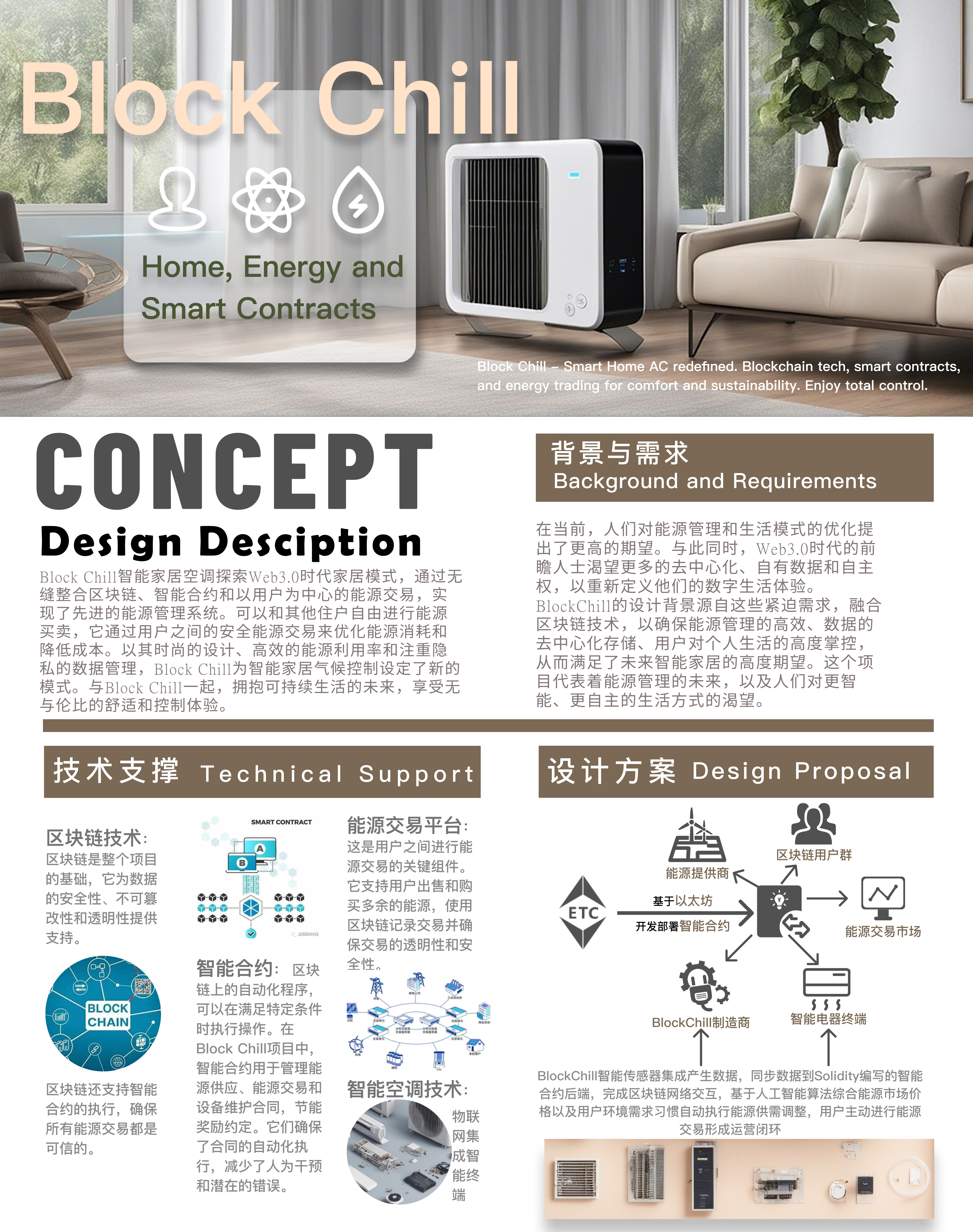 Block Chill探索Web3.0时代家居模式,通过无缝整合区块链、智能合约和以用户为中心的能源交易,实现了先进的能源管理系统。通过用户之间的安全能源交易来优化能源消耗和降低成本。Web3.0时代的前瞻人士渴望更多的去中心化、自有数据和自主权,以重新定义他们的数字生活体验。BlockChill源自这些紧迫需求,融合区块链技术,确保能源管理的高效、数据的去中心化存储、用户对个人生活的高度掌控。