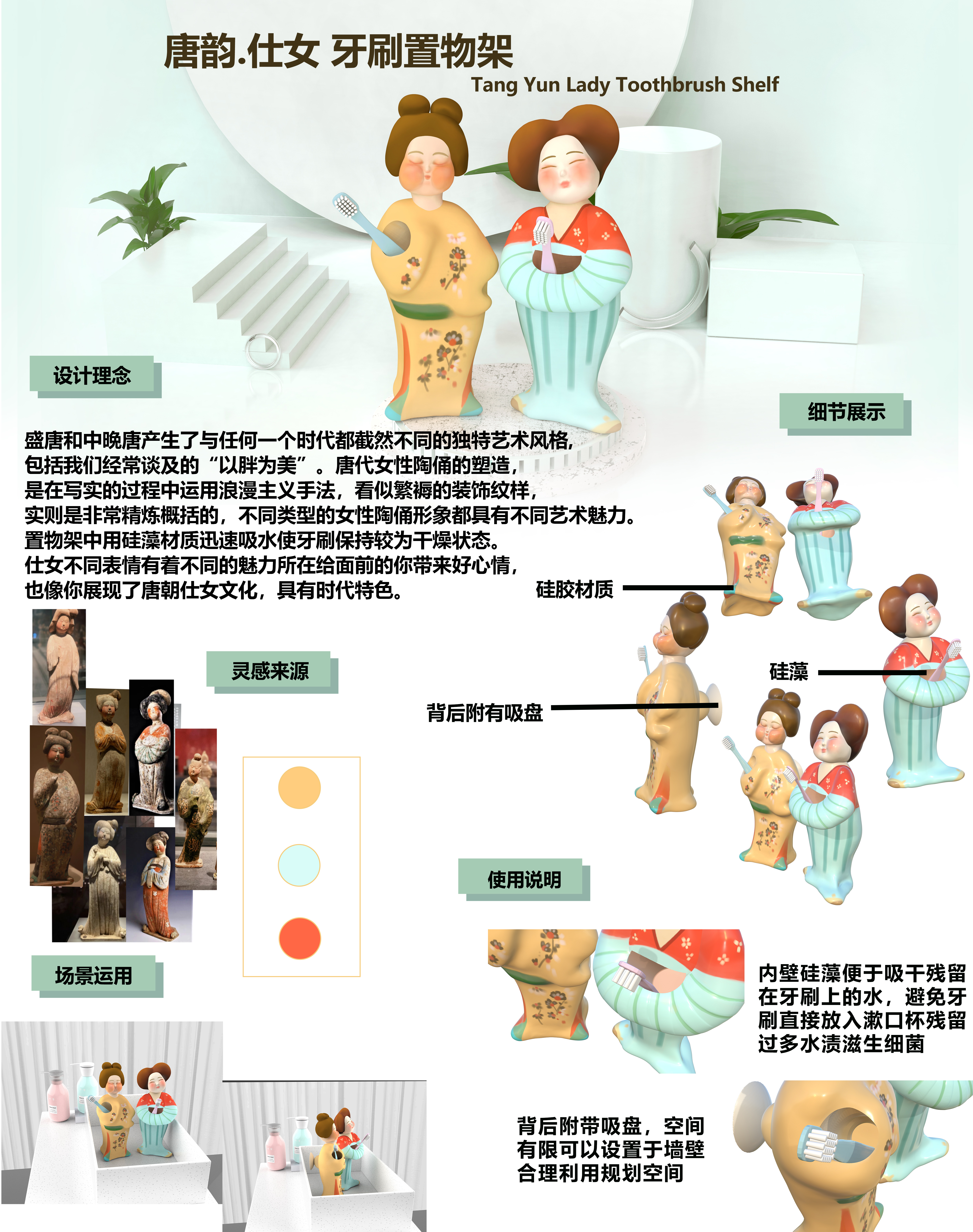 樱桃樊素口,杨柳小蛮腰。黛青描画眉,凝脂若雪肤。“唐代的仕女俑就是最典型的盛唐美人的真实写照,与现代生活结合手握牙刷显得仕女可爱灵动使仕女俑更具趣味性。部硅藻材质的设计便于快速吸干牙刷上残留的水渍且不易滋生细菌,底部为吸盘状可以轻松稳定地立在洗手台台面,背部有吸盘式款式以便合理规划空间不占地方。 。
