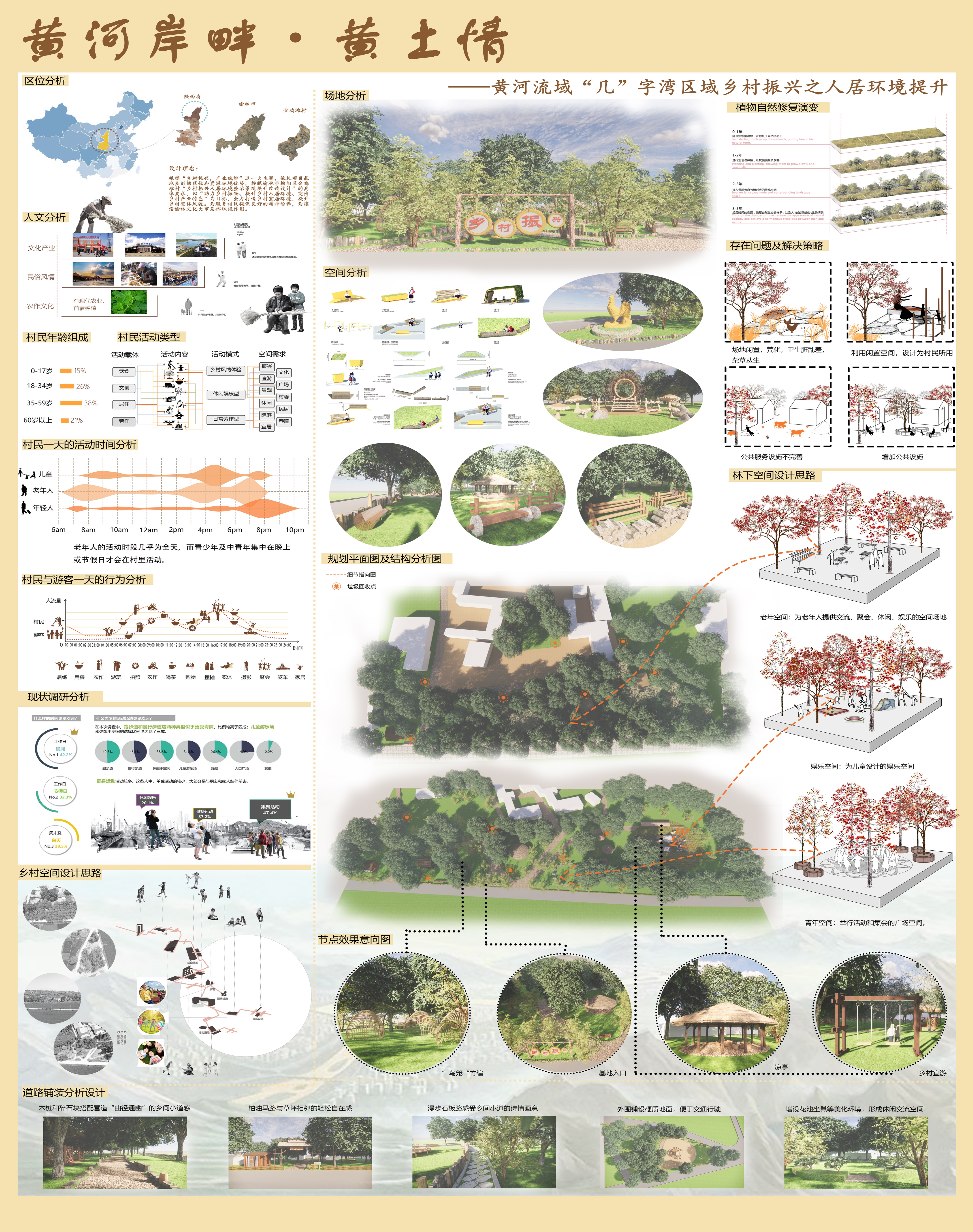金鸡滩设计说明: 根据“乡村振兴,产业赋能”这一大主题,依托项目基地良好的区位和资源环境优势,按照榆林市榆阳区金鸡滩村“乡村振兴人居环境整治景观提升改造设计”的具体要求,以“助力乡村振兴、提升乡村人居环境、突出乡村产业特色”为目标,全力打造乡村宜居环境,提升乡村整体风貌。为服务村民提供良好的精神给养,为建设榆林文化大市发挥积极作用。