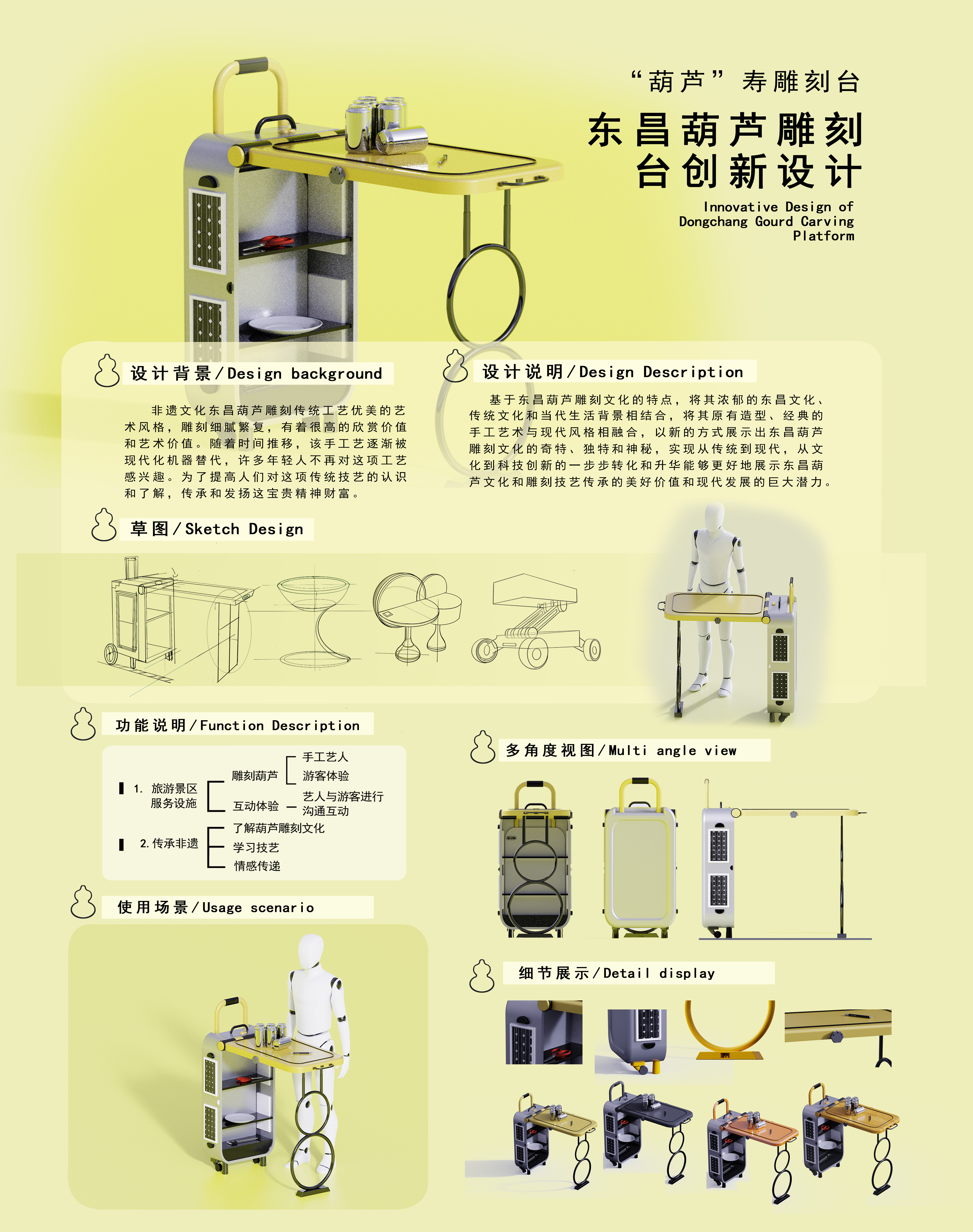 东昌葫芦雕刻文化体验设施产品的功能定位是展示传统艺术技艺、提供旅游服务互动体验、推出创新应用多重功能,保持传统文化美好传承,符合现代游客需求,以实现葫芦文化的更好传播和发展。基于东昌葫芦雕刻文化的特点,将其浓郁的东昌传统文化和当代生活背景相结合,将其原有造型、经典的手工艺术与现代风格相融合,以新的方式展示出东昌葫芦雕刻文化的奇特、实现从传统到现代,从文化到科技创新转化升华更好地展示东昌葫芦文化价值