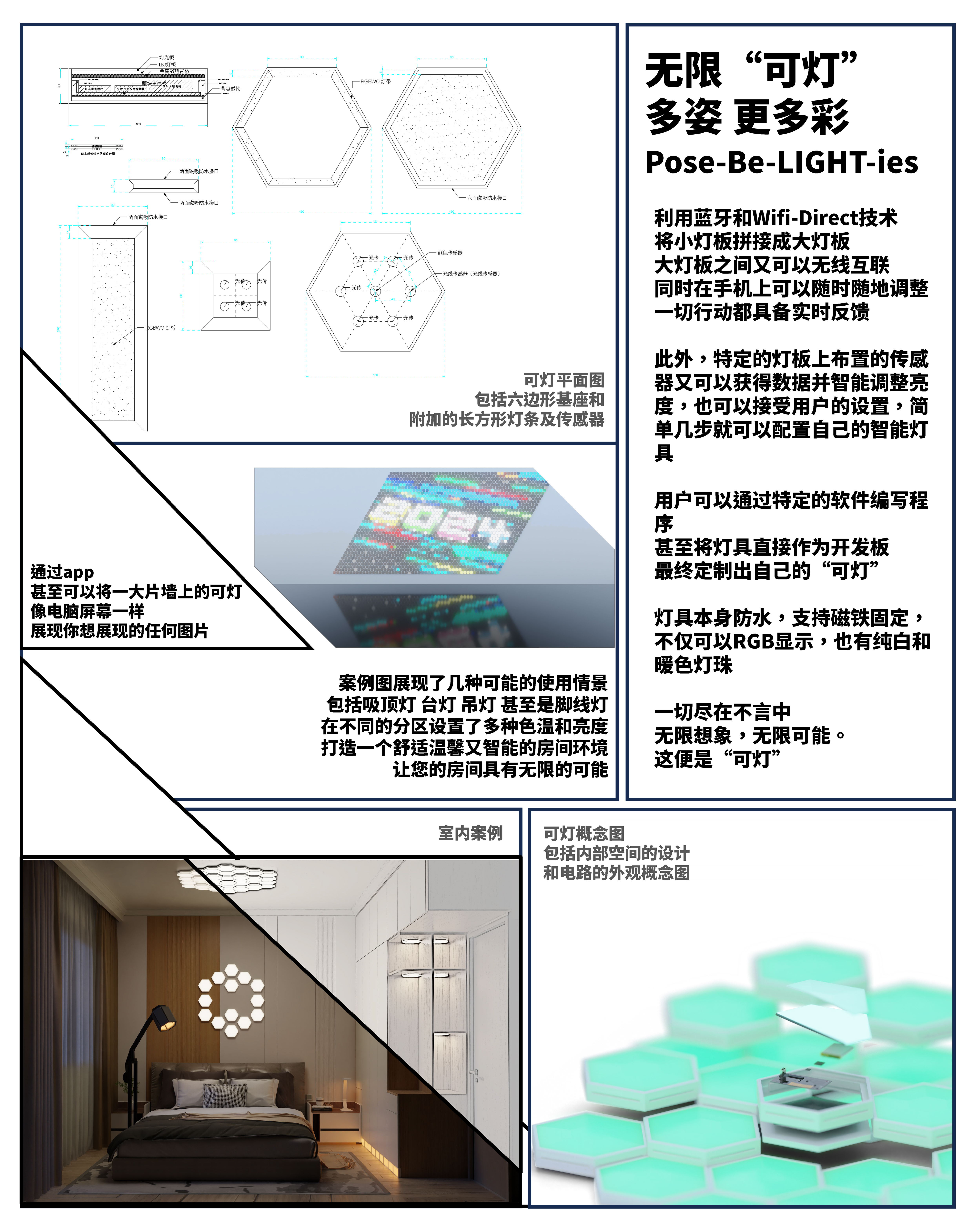 一款摆脱线缆束缚的互联灯具 既可像传统灯具一样装饰使用 也可以让灯具之间远程互联,打造智能房间。 同时内部硬件是完整的开发板,以所见即所得的原则,也可以作为少儿编程的教育套组 又或者让用户自己定义灯具的作用 发挥想像 无限可能