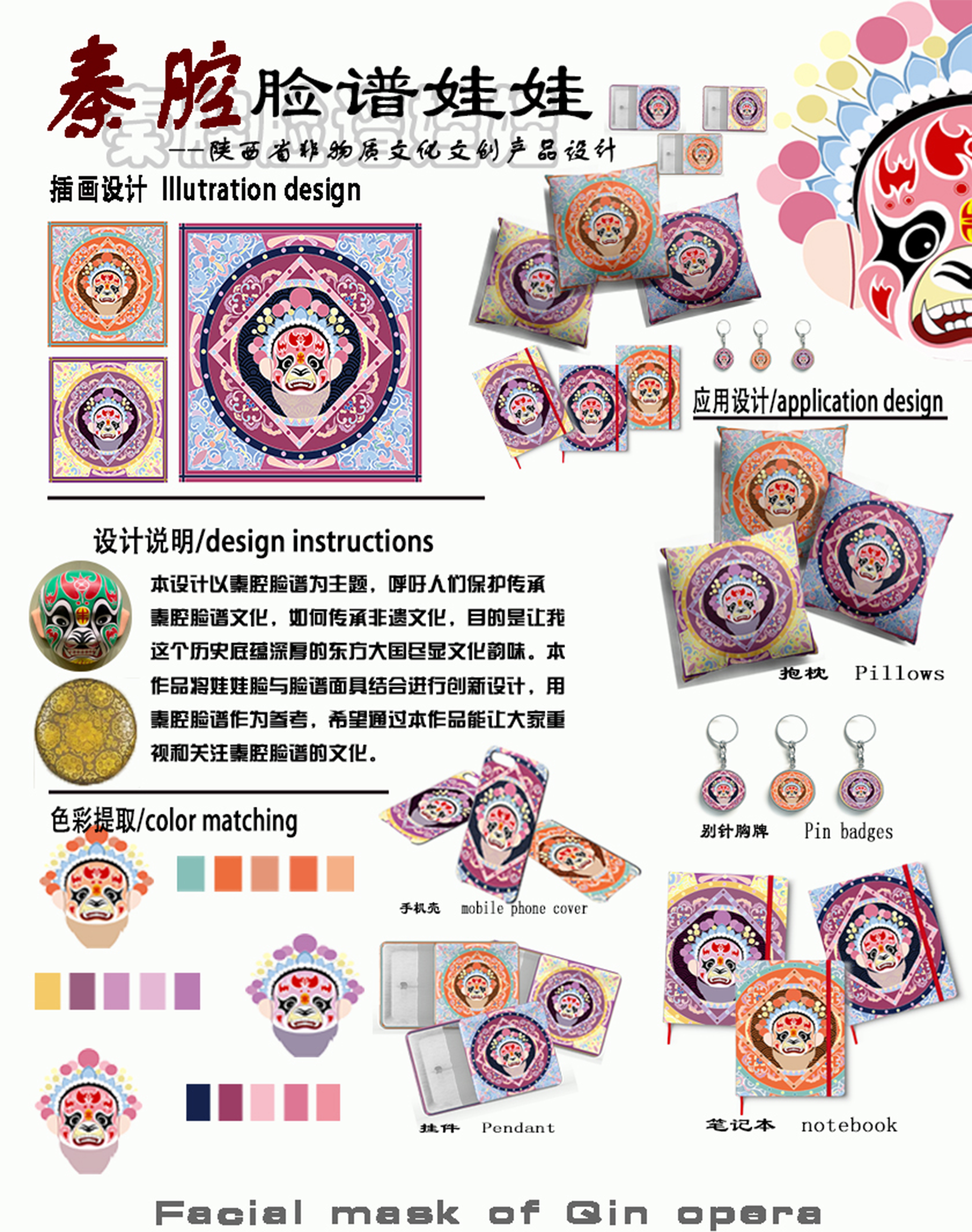 本设计以秦腔脸谱为主题,呼吁人们保护传承 秦腔脸谱文化,如何传承非遗文化,目的是让我这个历史底蕴深厚的东方大国尽显文化韵味。