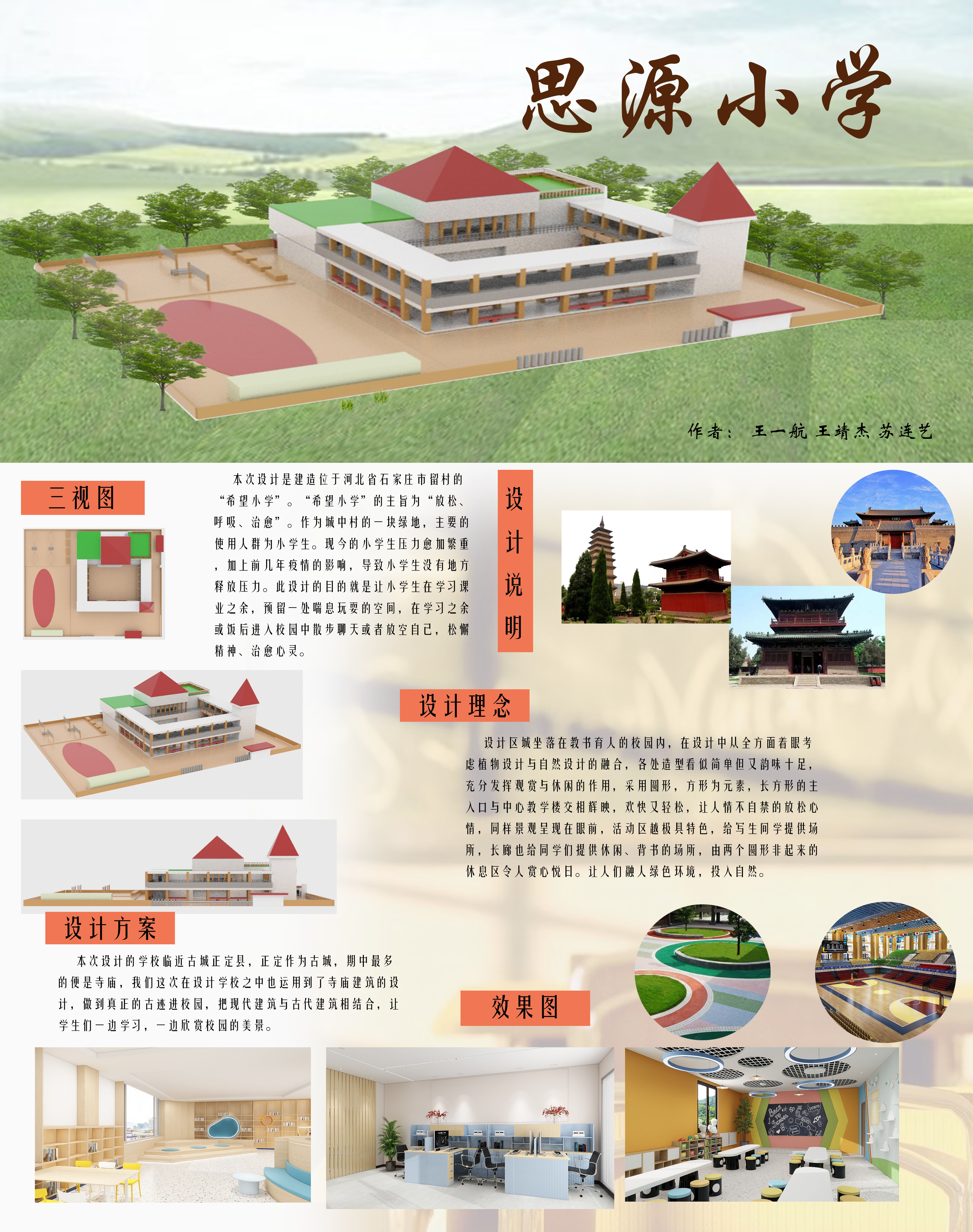 设计区城坐落在教书育人的校园内,在设计中从全方面着眼考虑植物设计与自然设计的融合,各处造型看似简单但又韵味十足,充分发挥观赏与休闲的作用,采用圆形,方形为元素,半圆形的主入口与中心中心椭圆交相辉映,欢快又轻松,让人情不自禁的放松心情,同样景观呈现在眼前,活动区越极具特色,给写生间学提供场所,长廊也给同学们提供休闲、背书的场所,由两个圆形非起来的休息区令人赏心悦日。让人们融人绿色环境,投入自然。
