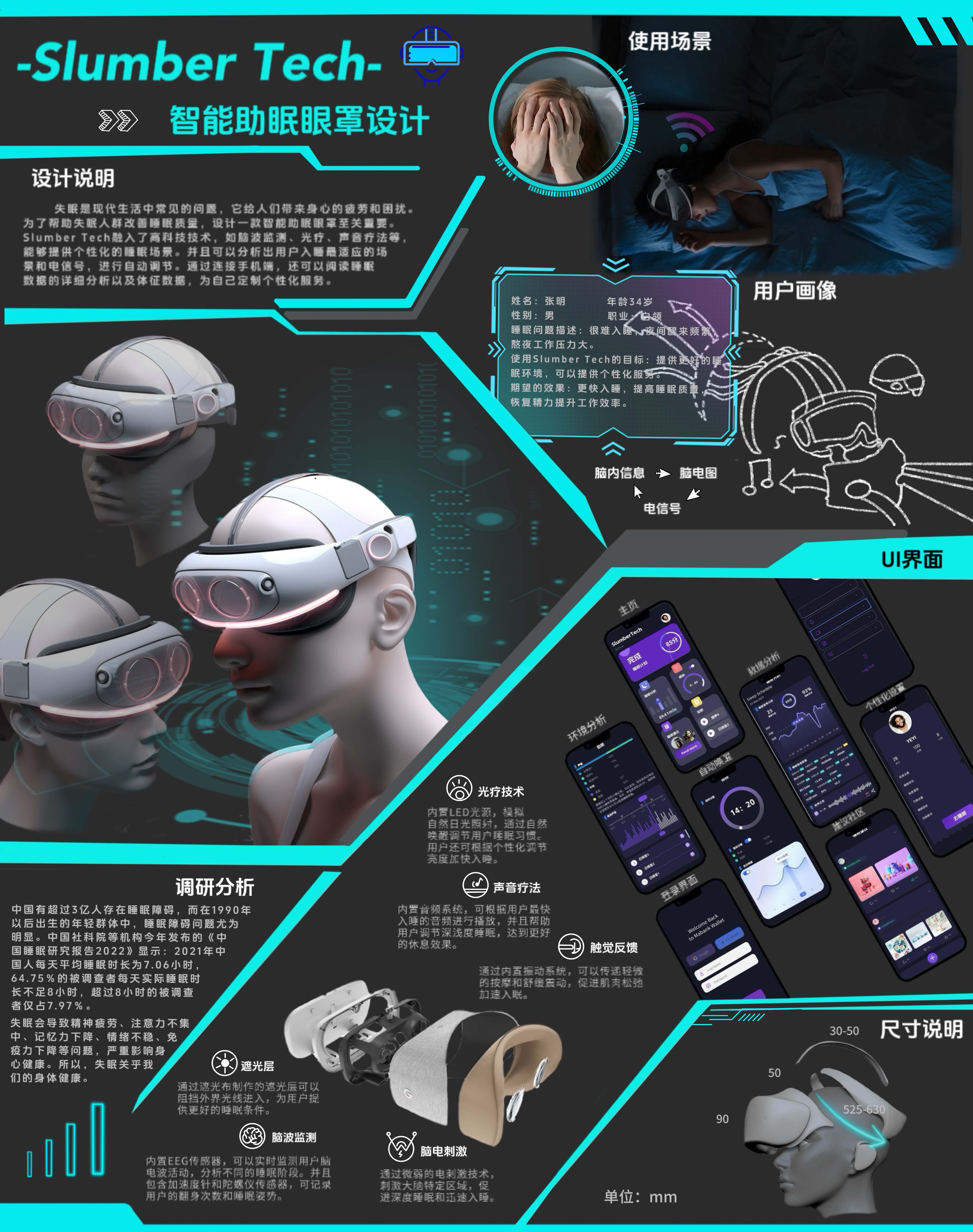 失眠是现代生活中常见的问题,它给人们带来身心的疲劳和困扰。而长期失眠会对身体健康造成危害。Slumber Tech为解决这一问题,融入了高科技技术,如脑波监测、光疗、声音疗法等,能够提供个性化的睡眠场景。并且可以分析出用户入睡最适应的场景和电信号,进行自动调节。系统还配有自动唤醒功能,根据自然光照调节用户的睡眠习惯。通过连接手机端,还可以阅读睡眠数据的详细分析以及体征数据,为自己定制个性化服务。