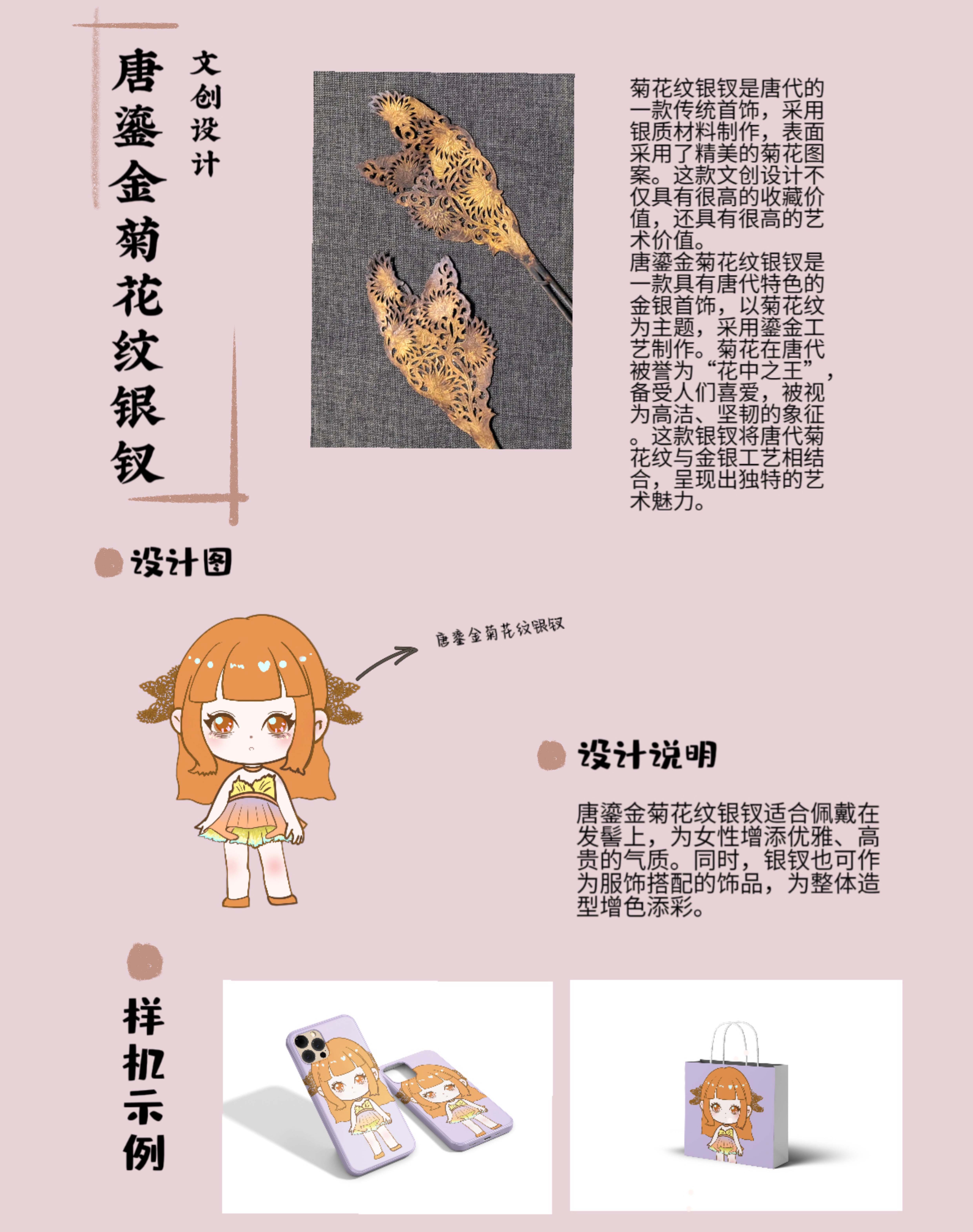 唐鎏金菊花纹银钗文创设计