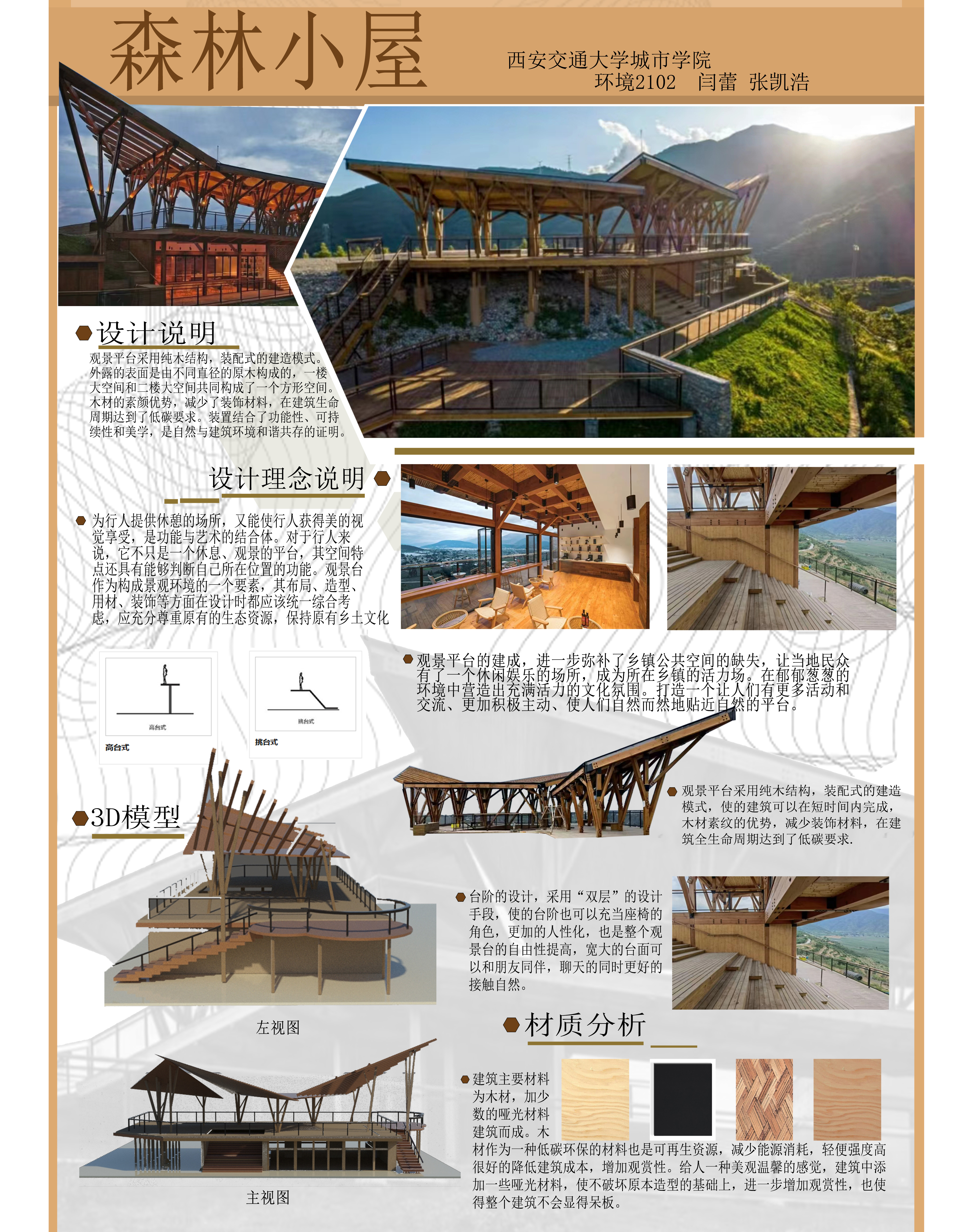 观景平台采用纯木结构,装配式的建造模式。外露的表面是由不同直径的原木构成的,一楼大空间和二楼大空间共同构成了一个方形空间。木材的素颜优势,减少了装饰材料,在建筑生命周期达到了低碳要求。装置结合了功能性、可持续性和美学,是自然与建筑环境和谐共存的证明。更重要的是,观景平台的建成,进一步弥补了乡镇公共空间的缺失,让当地民众有了一个休闲娱乐的场所,成为所在乡镇的活力场。