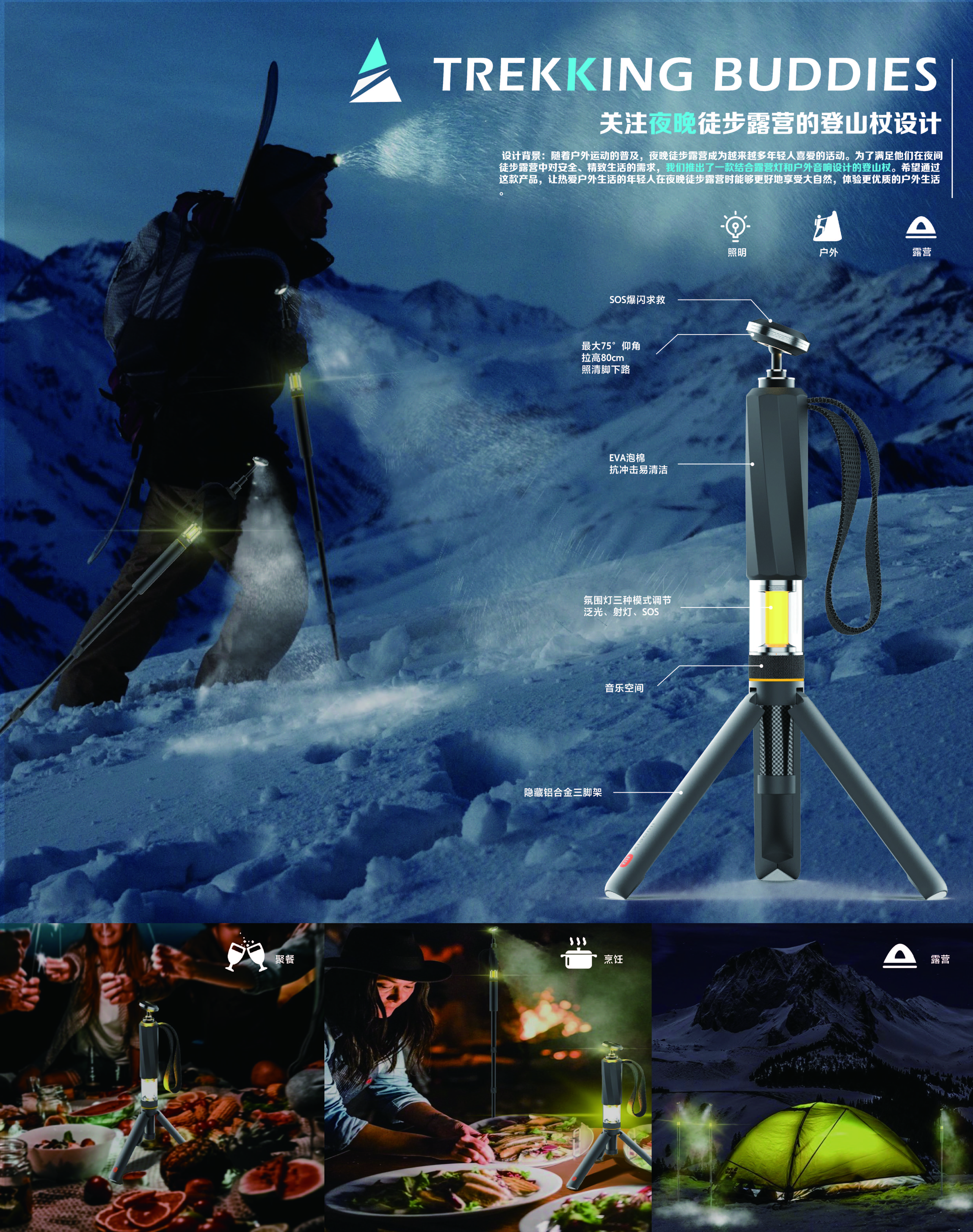 TREKKING BUDDIES关注夜晚徒步露营的登山杖设计