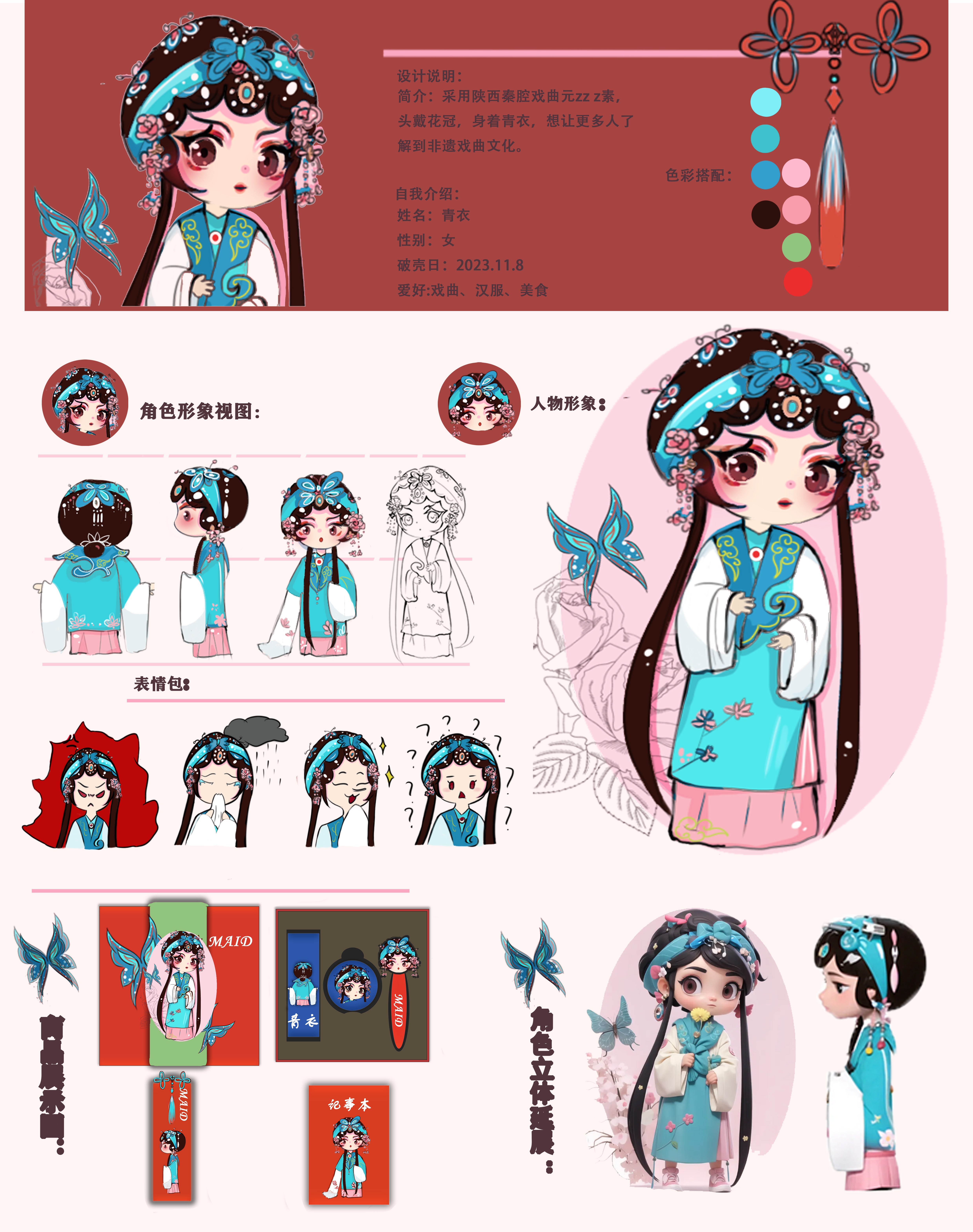 采用陕西秦腔戏曲元素,头戴花冠,身着青衣,想让更多人了解到非遗戏曲文化。
