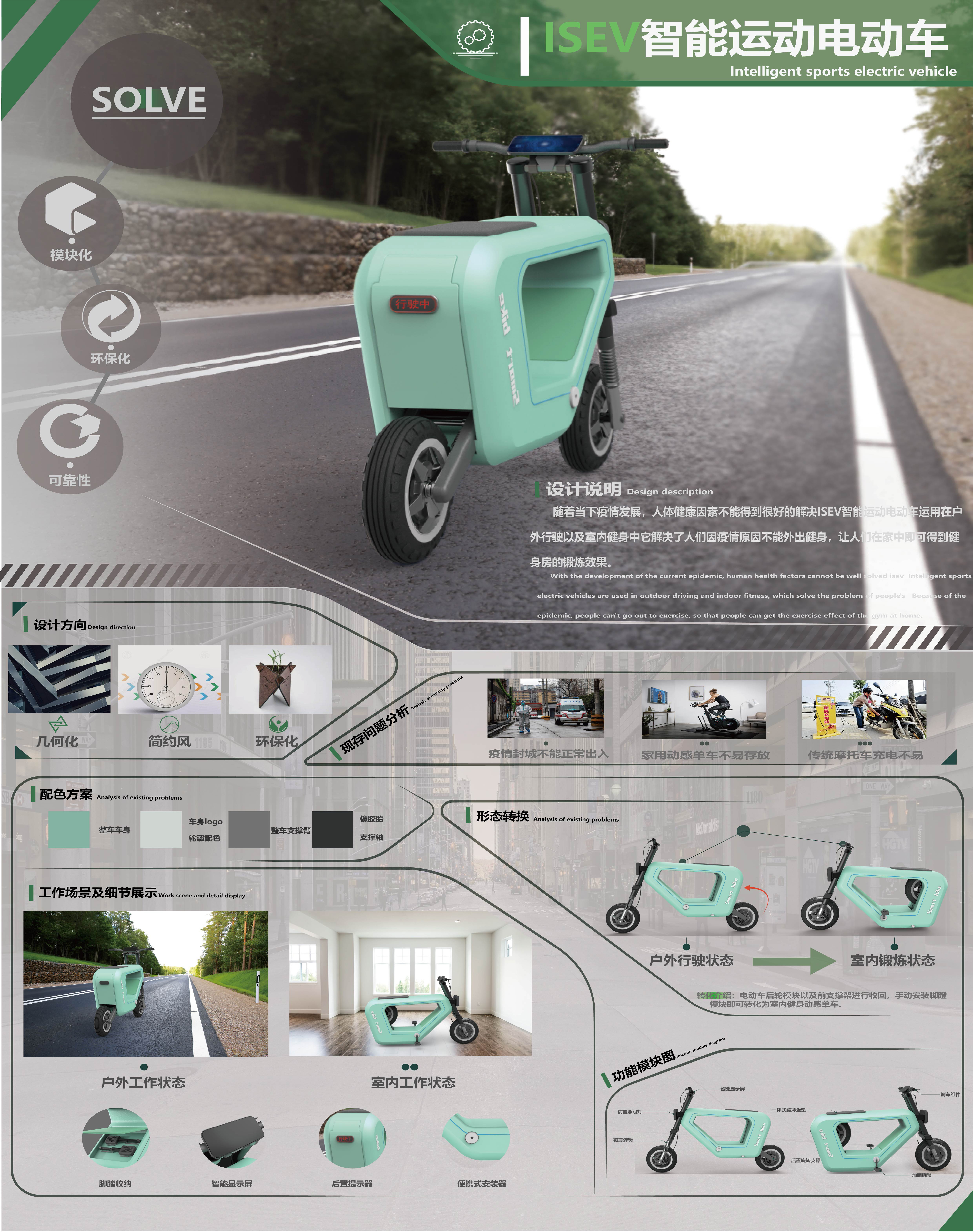 这款智能运动电动车希望人们如若再遇见疫情或不方便出家门时,可将它通过简单步骤的安装,从外出电动车改装为室内锻炼运动单车,满足了人们出行和锻炼的需要,提高空间利用率,让消费者们不用再分别购买,而是实现一体两用。