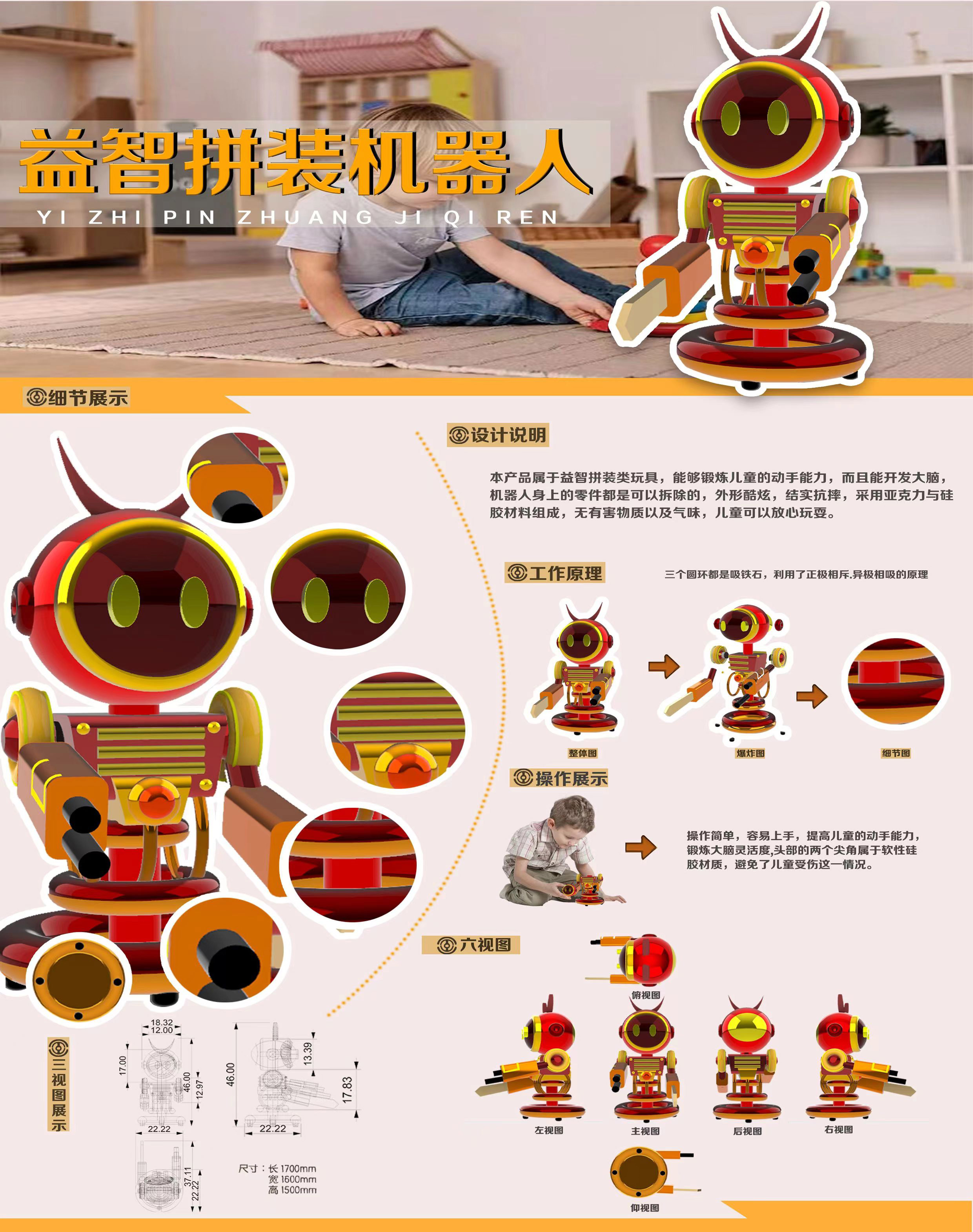 本产品属于益智拼装类玩具,能够锻炼儿童的动手能力,而且能开发大脑,机器人身上的零件都是可以拆除的,外形酷炫,结实抗摔,采用亚克力与硅胶材料组成无有害物质以及气味,儿童可以放心玩耍。