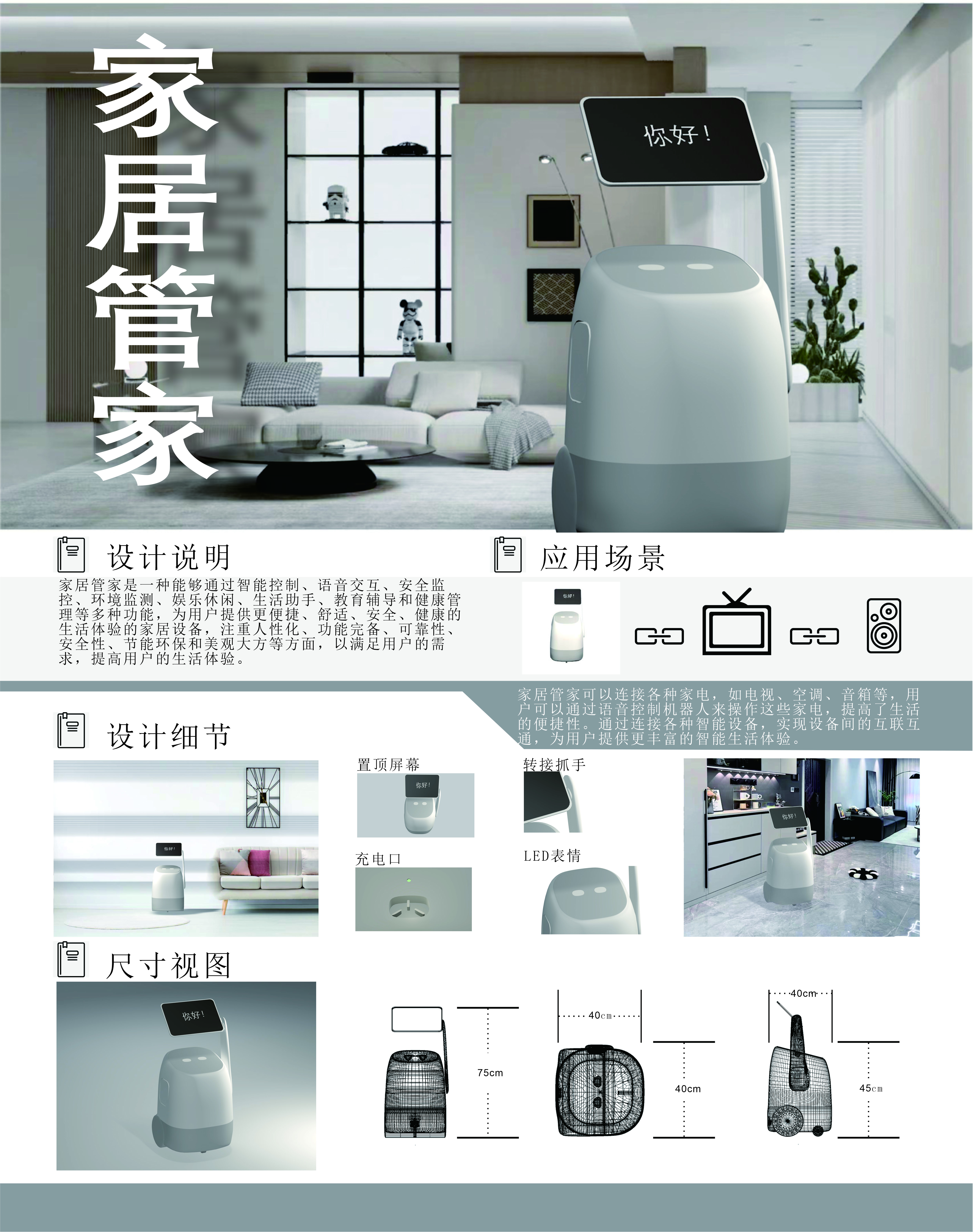 家居管家外观概念设计,数字智能创新人机交互创新,居家智能化管理机器人。