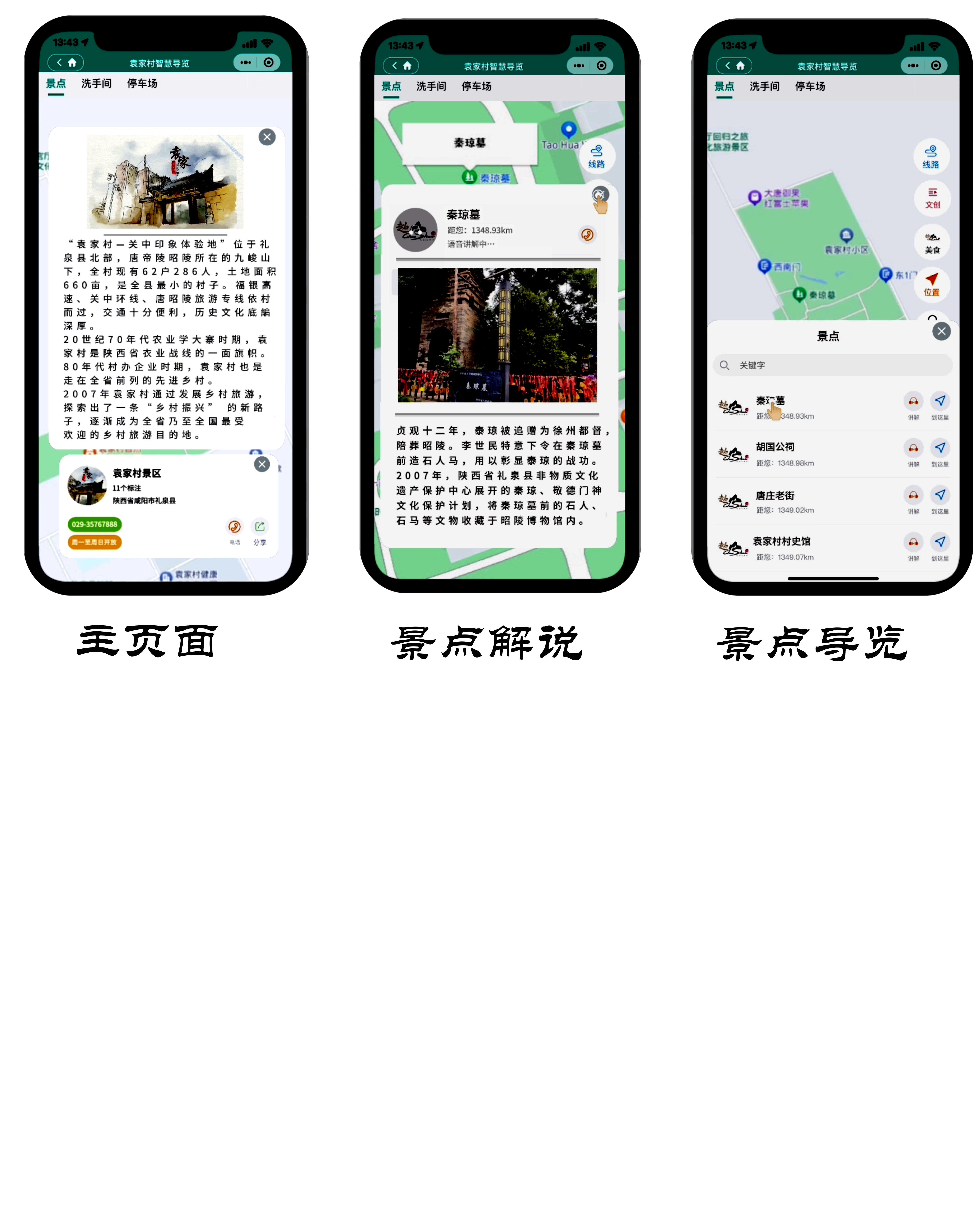 《袁家村智慧导览小程序》以陕西关中印象旅游地一一袁家村的全域旅游、环境导览为主体进行开发,让游客轻松了解与查询袁家村周边服务、卫生间、停车场、酒店、餐饮等标注地点的位置和介绍,导览系统文持一键导航、路线推荐、实时定位、语音讲解、图文和视频内容等。小程序开发的核心理念为“助力旅游产业,赋能乡村振兴”,小程序还适用于城市、乡镇、景区、动物园、科技园等各种环境的实时导览,具有需求量大,实用性强等特点。