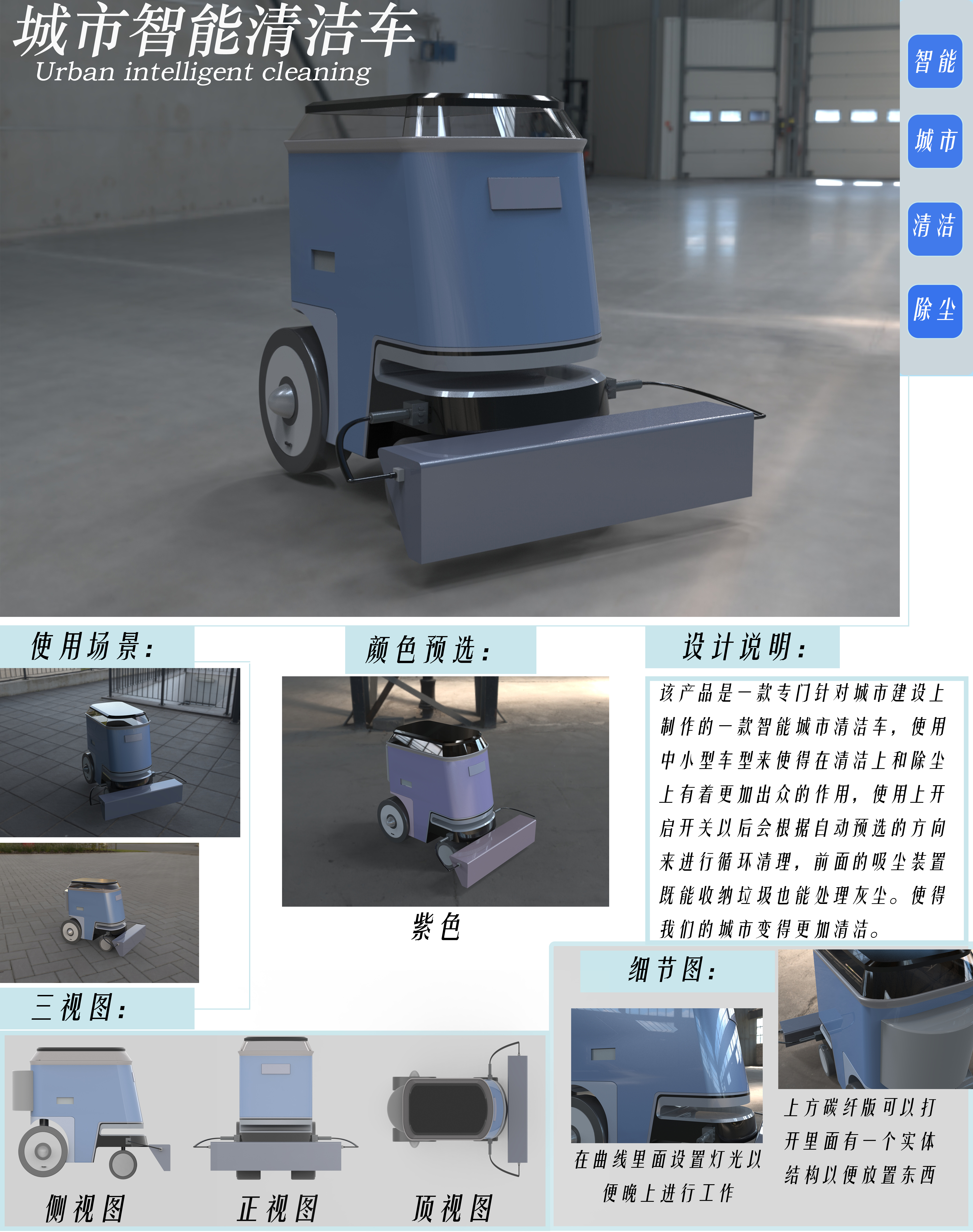 该产品是一款专门针对城市建设上制作的一款智能城市清洁车,使用中小型车型来使得在清洁上和除尘上有着更加出众的作用,使用上开启开关以后会根据自动预选的方向来进行循环清理,前面的吸尘装置既能收纳垃圾也能处理灰尘。使得我们的城市变得更加清洁。