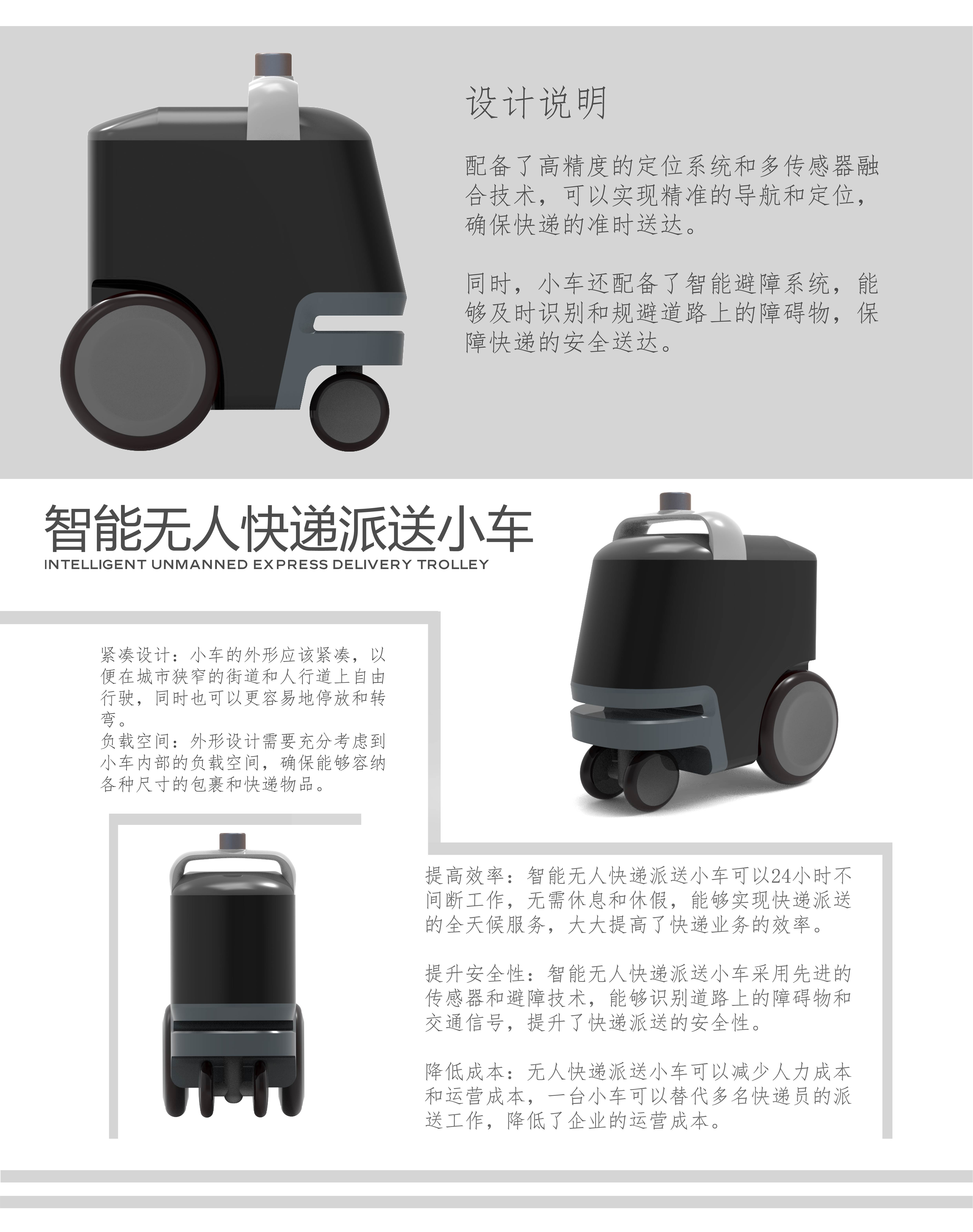 我们很高兴向您介绍我们的智能无人快递派送小车。这款小车采用先进的无人驾驶技术,能够自主规划路线、识别交通信号和障碍物,并安全地将快递送达目的地。 该小车配备了高精度的定位系统和多传感器融合技术,可以实现精准的导航和定位,确保快递的准时送达。同时,小车还配备了智能避障系统,能够及时识别和规避道路上的障碍物,保障快递的安全送达。