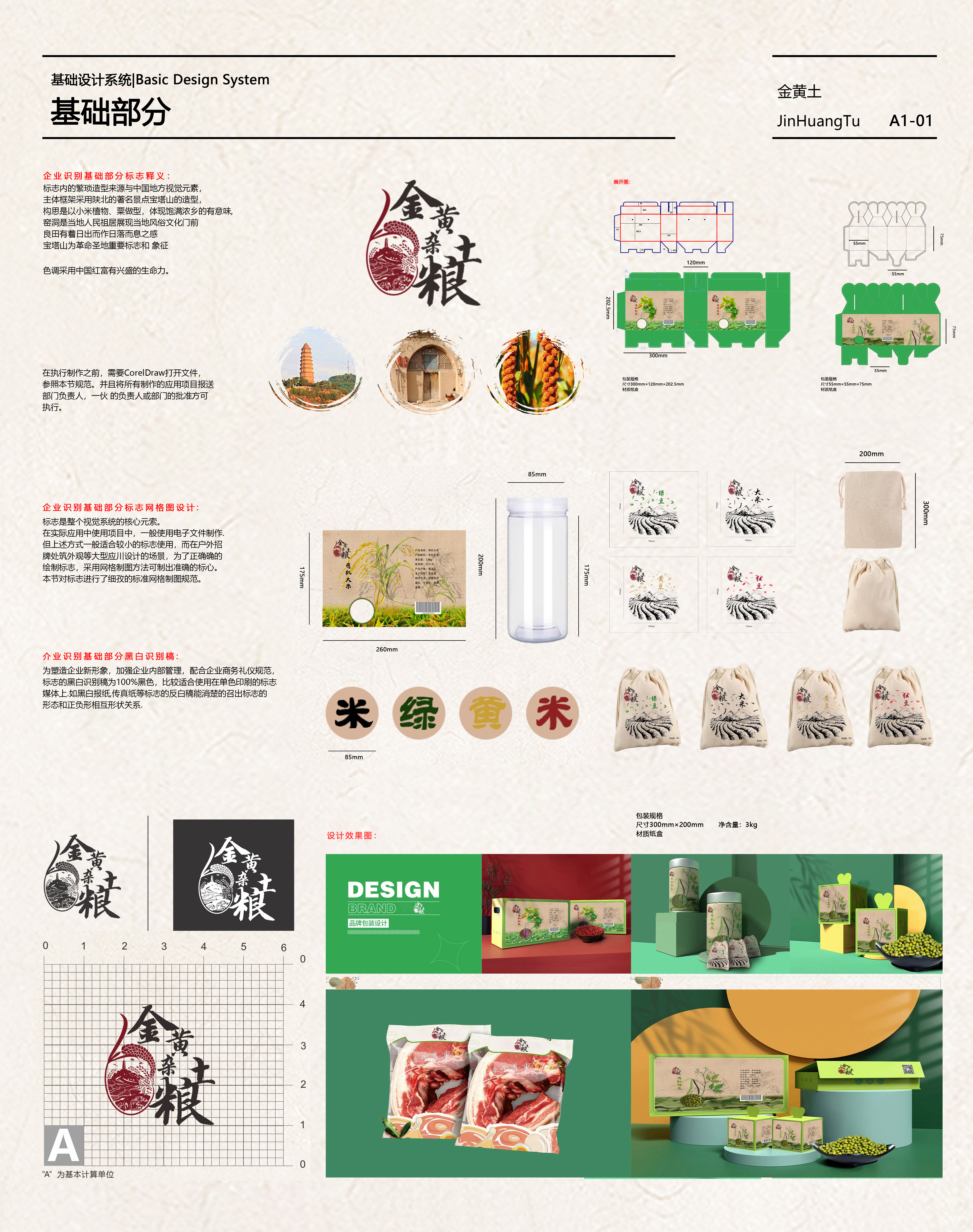 本次包装设计项目致力于“有机农产品”的产销发展。对于兴村振兴来说,农产品的产出和营销是民生之根本,我就想通过自己浅薄的设计能力将农产品品牌化与营销化,这样才可以有更多渠道如电商、供销社、超市等,因此,设计外观造型采用了古朴的传统设计风格,材质分别采用了可再生的编制麻布、秸秆绳和木浆纸,体现了天然有机的食品理念,对于农产品中大米、小米、黄豆、绿豆、红豆等展开了系列化包装
