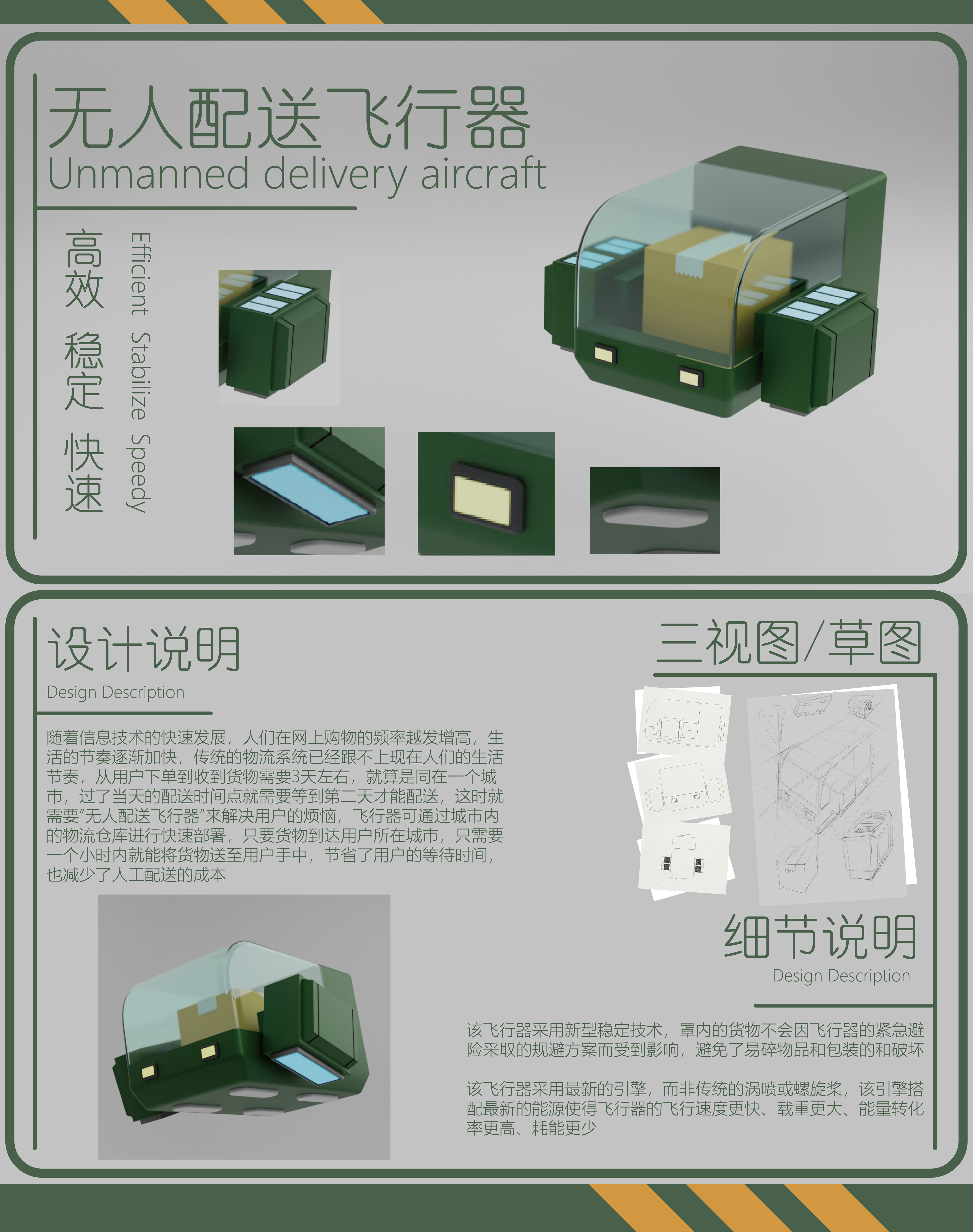 随着信息技术的快速发展,人们在网上购物的频率越发增高,生活的节奏逐渐加快,传统的物流系统已经跟不上现在人们的生活节奏,从用户下单到收到货物需要3天左右,就算是同在一个城市,过了当天的配送时间点就需要等到第二天才能配送,这时需要“无人配送飞行器”来解决用户的烦恼,飞行器可通过城市内的物流仓库进行快速部署,只需要一个小时内就能将货物送至用户手中,节省了用户的等待时间,也减少了人工配送的成本。