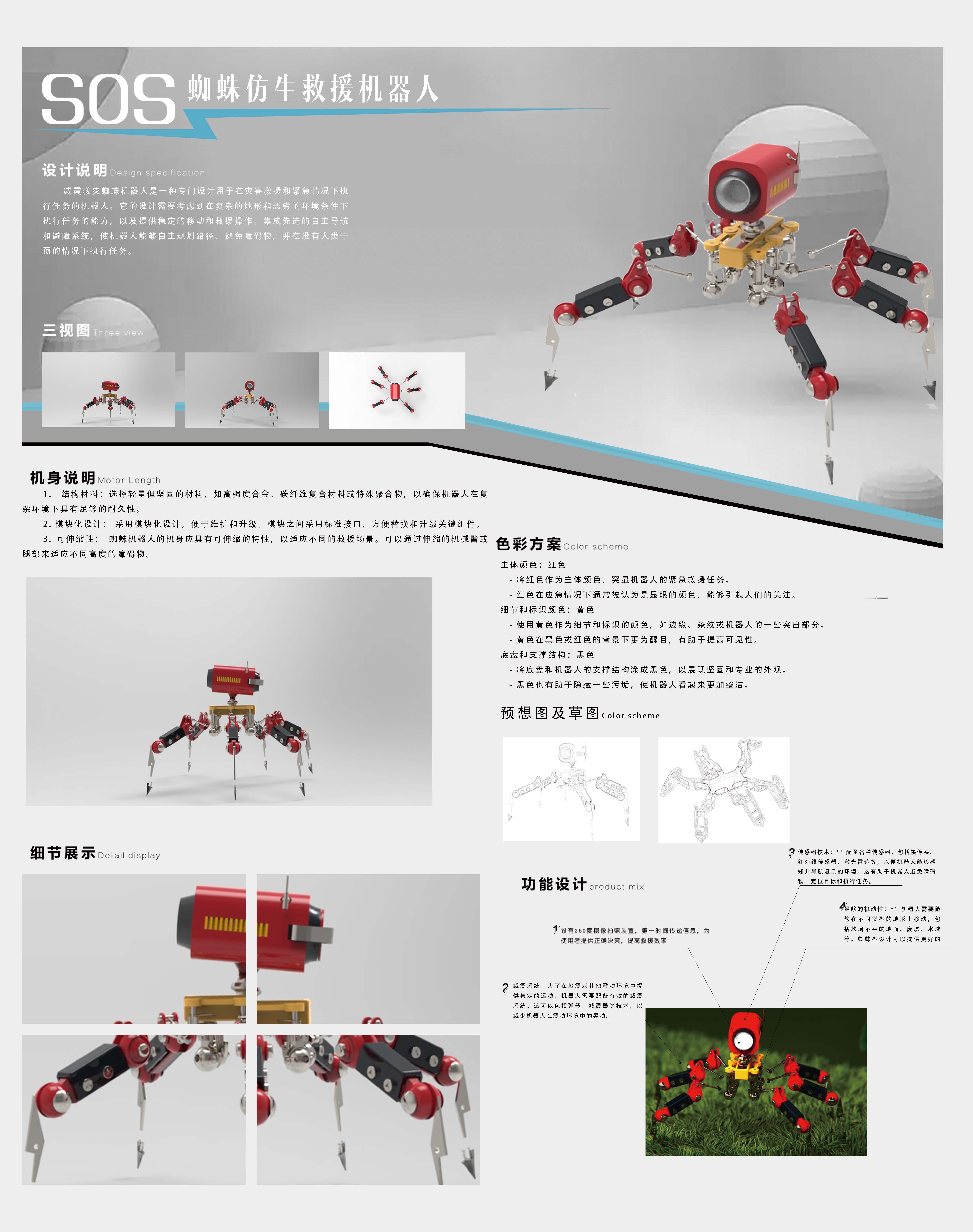 减震救灾蜘蛛机器人是一种专门设计用于在灾害救援和紧急情况下执行任务的机器人。它的设计需要考虑到在复杂的地形和恶劣的环境条件下执行任务的能力,以及提供稳定的移动和救援操作。集成先进的自主导航和避障系统,使机器人能够自主规划路径、避免障碍物,并在没有人类干预的情况下执行任务。