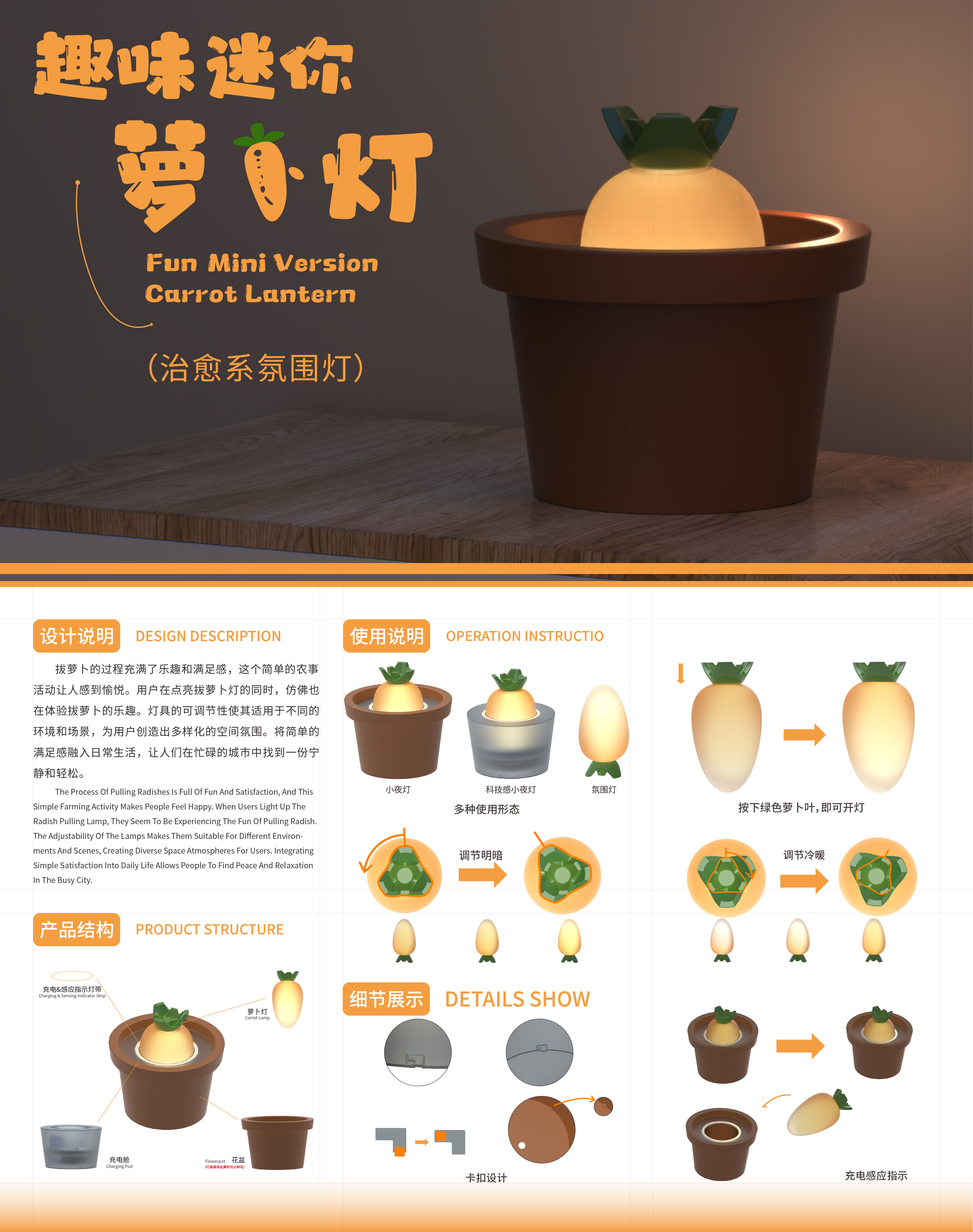 拔萝卜的过程充满了乐趣和满足感,这个简单的农事活动让人感到愉悦。用户在点亮拔萝卜灯的同时,仿佛也在体验拔萝卜的乐趣。灯具的可调节性使其适用于不同的环境和场景,为用户创造出多样化的空间氛围。将简单的满足感融入日常生活,让人们在忙碌的城市中找到一份宁静和轻松。
