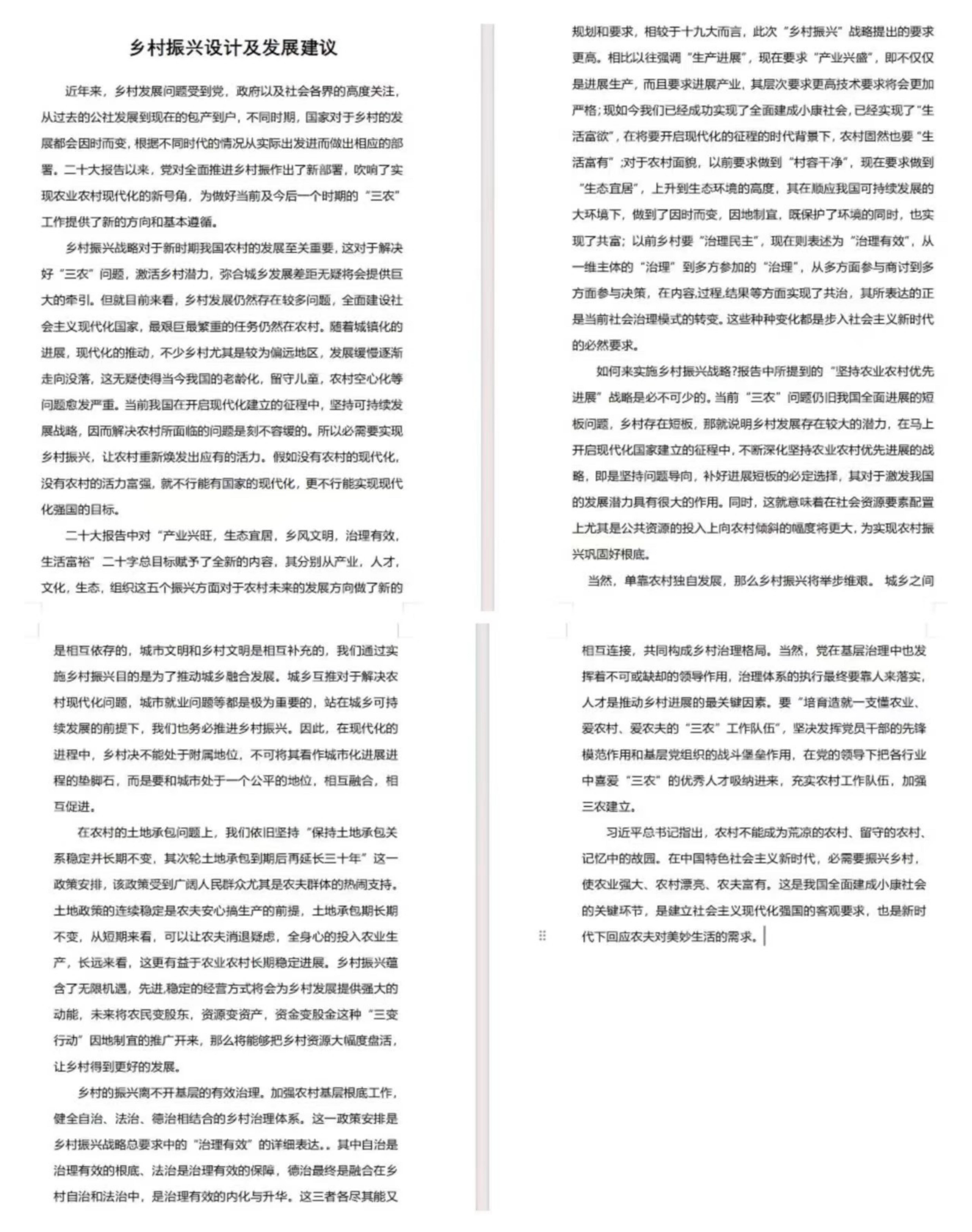 该作品是由我在导员的指导下,查阅党的十九大,二十大报告的内容,结合身边及我国乡村,社会的发展现状所进行的总结。
