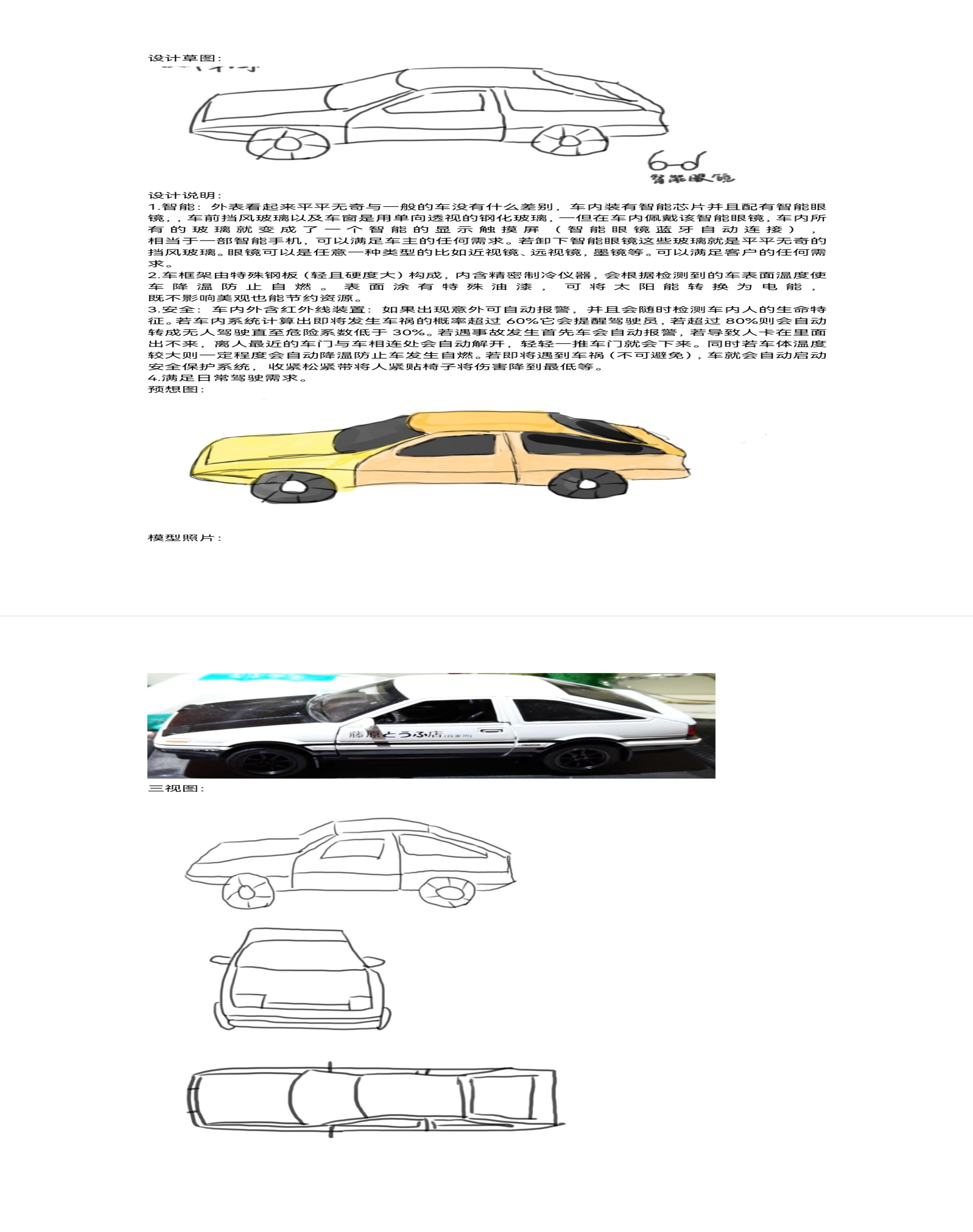 本设计是基于未来科技的发展,弥补现在人们出行所面临的一系列安全方面的问题。并且利用科技,使人类未来出行更加方便,更加智能,更加安全,更加环保。
