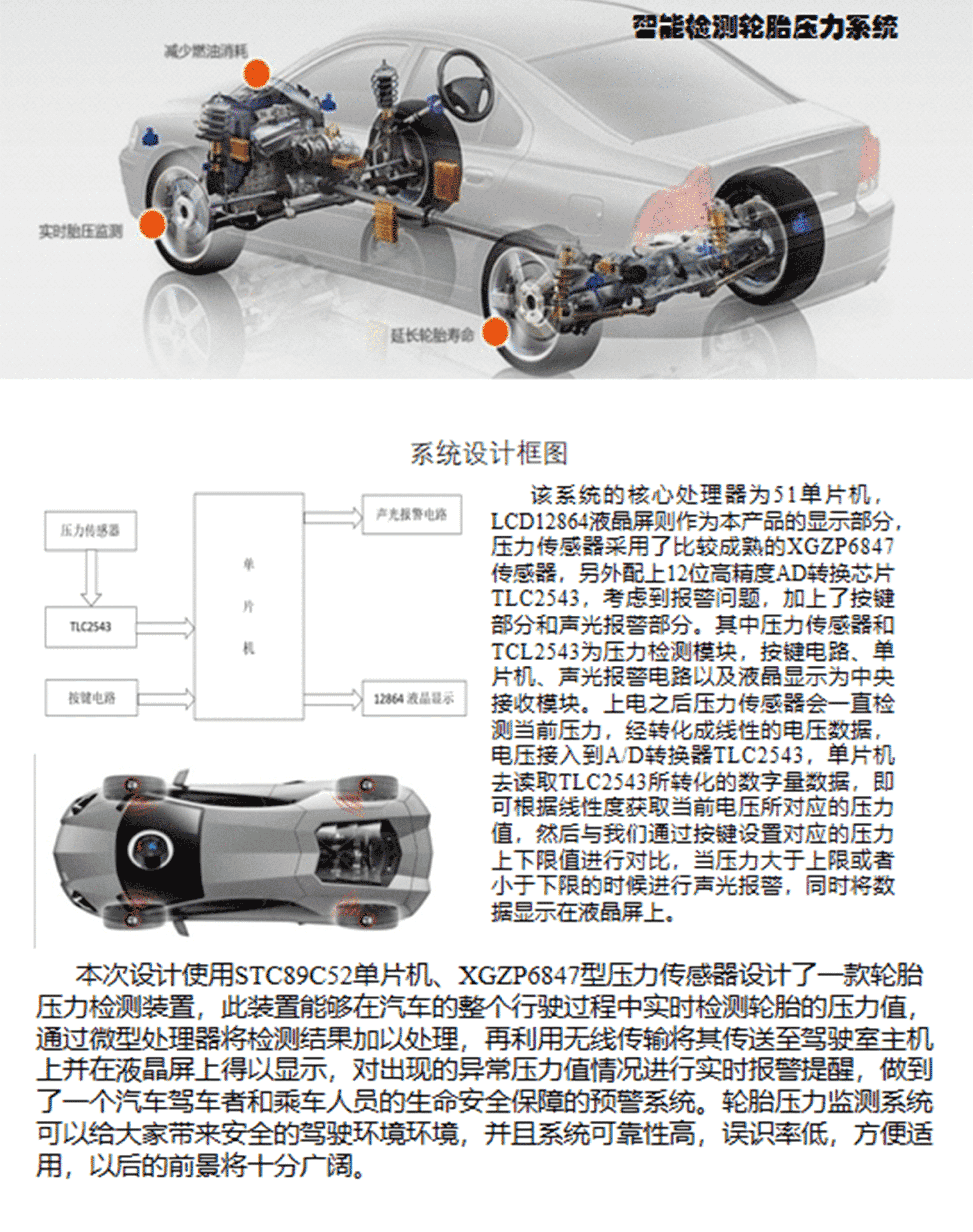 轮胎的气压会对轮胎的性能和寿命造成一定的影响,最终会影响到车辆行驶的安全。针对此现象本文设计了一种基于无线传感器的轮胎压力检测系统,该系统利用安装在汽车轮胎上的高精准微型无线传感器实时收集胎压,将其传输至汽车驾驶室的主机上,显示轮胎当前气压数据、以及轮胎异常情况,以语音播报的形式提醒驾驶员尽早对轮胎采取措施,防止爆胎,消除安全隐患。