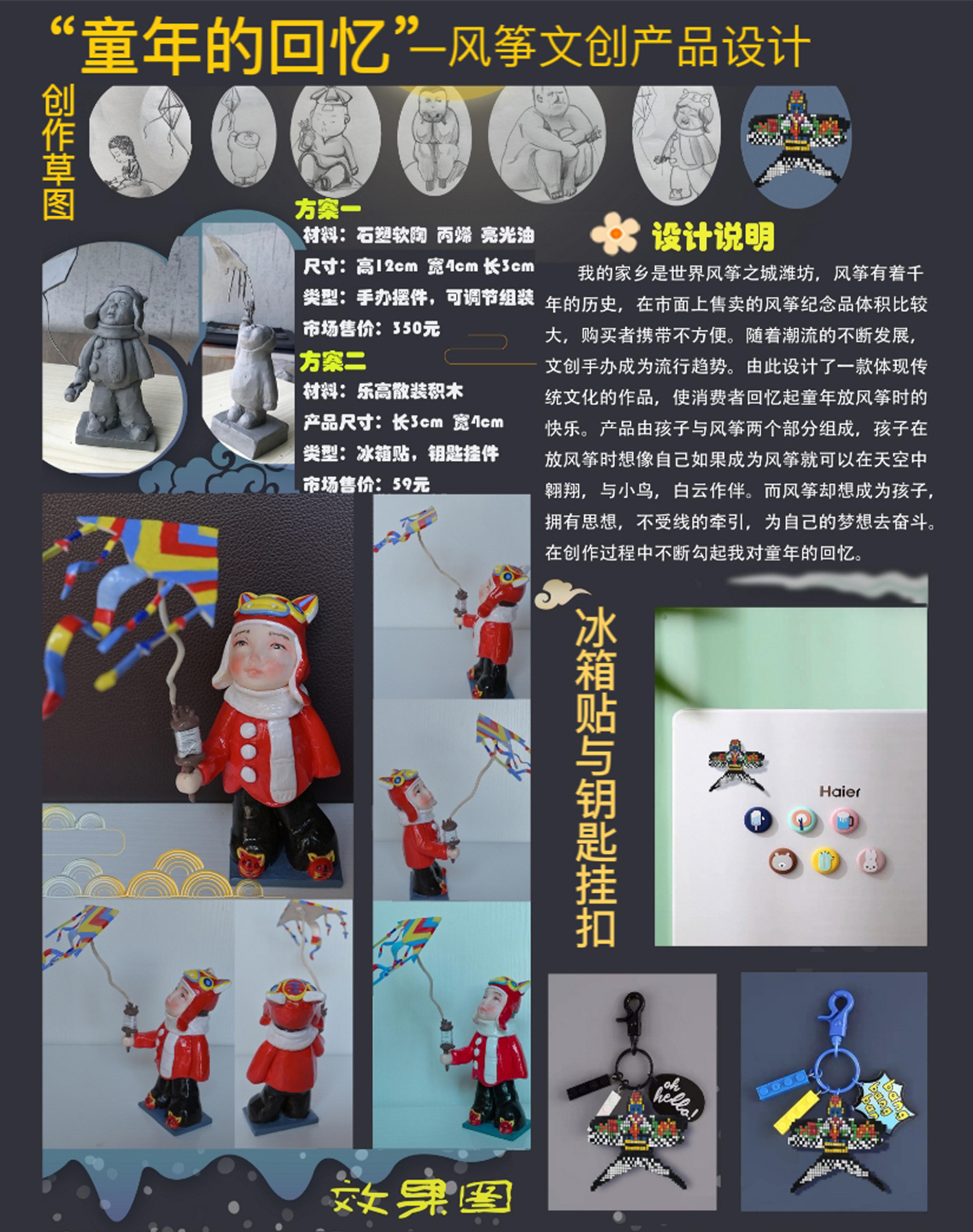随着潮流的不断发展,文创手办成为趋势,由此设计了一款体现传统文化的作品,使消费者回忆起童年放风筝时的快乐