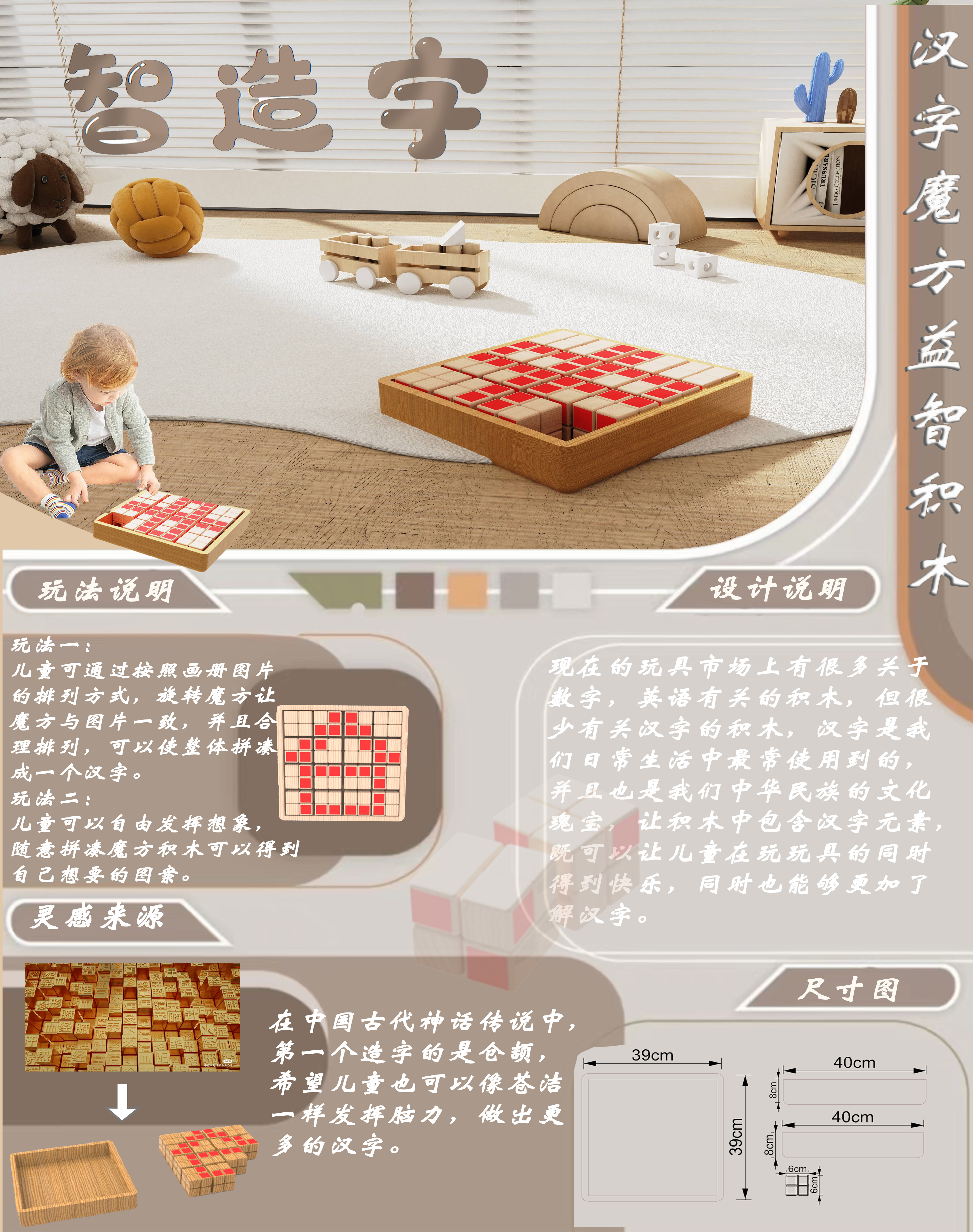 现在的玩具市场上有很多关于数字英语有关的积木,但很少有关于汉字的积木,汉字是我们日常生活中最常使用到的,并且也是我们中华民族的文化瑰宝,让积木中包含汉字元素,既可以让儿童在玩玩具的同时得到快快乐,同时也能够更加了解汉字。