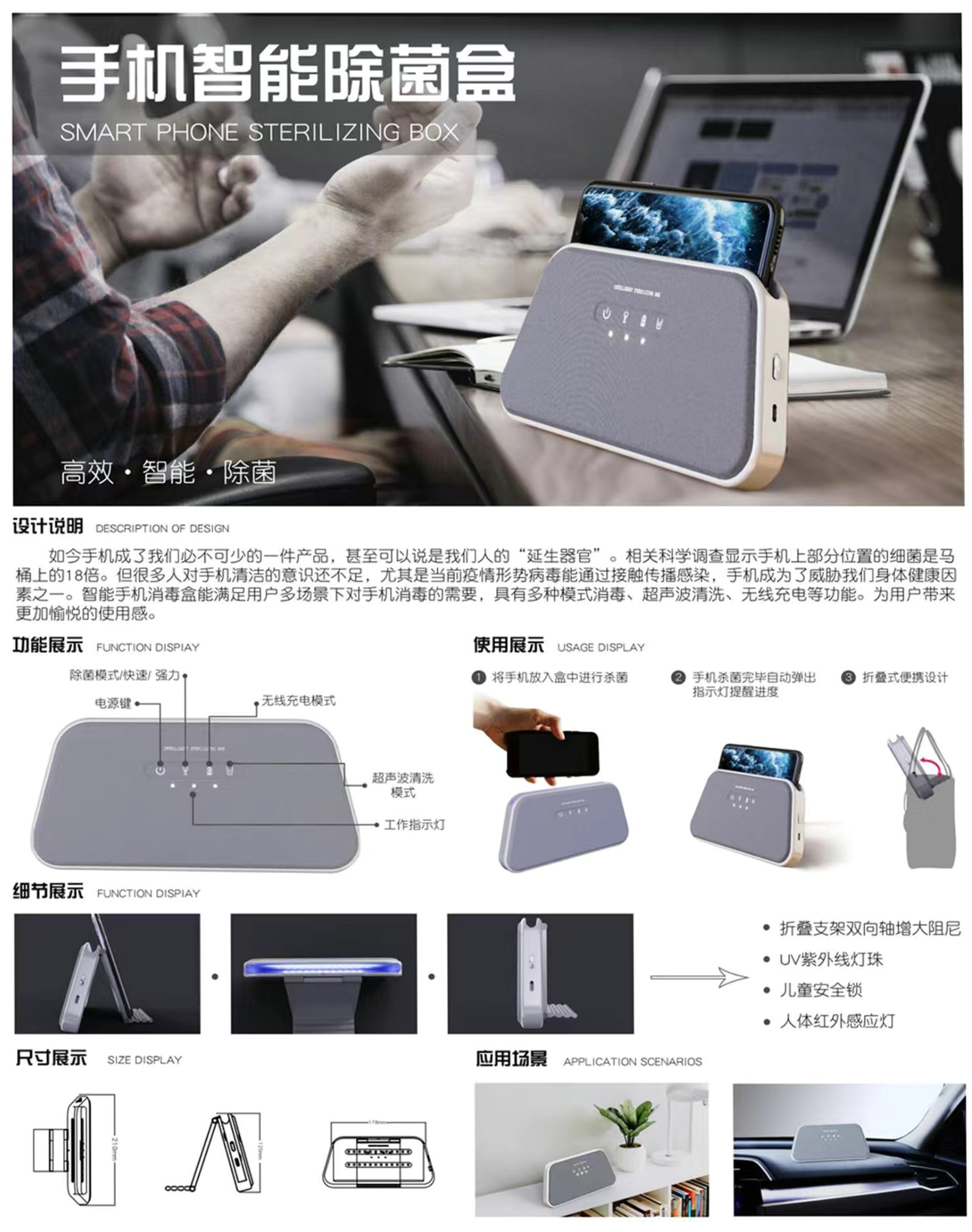 如今手机成了我们必不可少的一件产品,甚至可以说是我们人的“延生器官”。相关科学调查显示手机上部分位置的细菌是马桶上的18倍。但很多人对手机清洁的意识还不足,尤其是当前疫情形势病毒能通过接触传播感染,手机成为了威胁我们身体健康因素之一。智能手机消毒盒能满足用户多场景下对手机消毒的需要,具有多种模式消毒、超声波清洗、无线充电等功能。为用户带来更加愉悦的使用感。