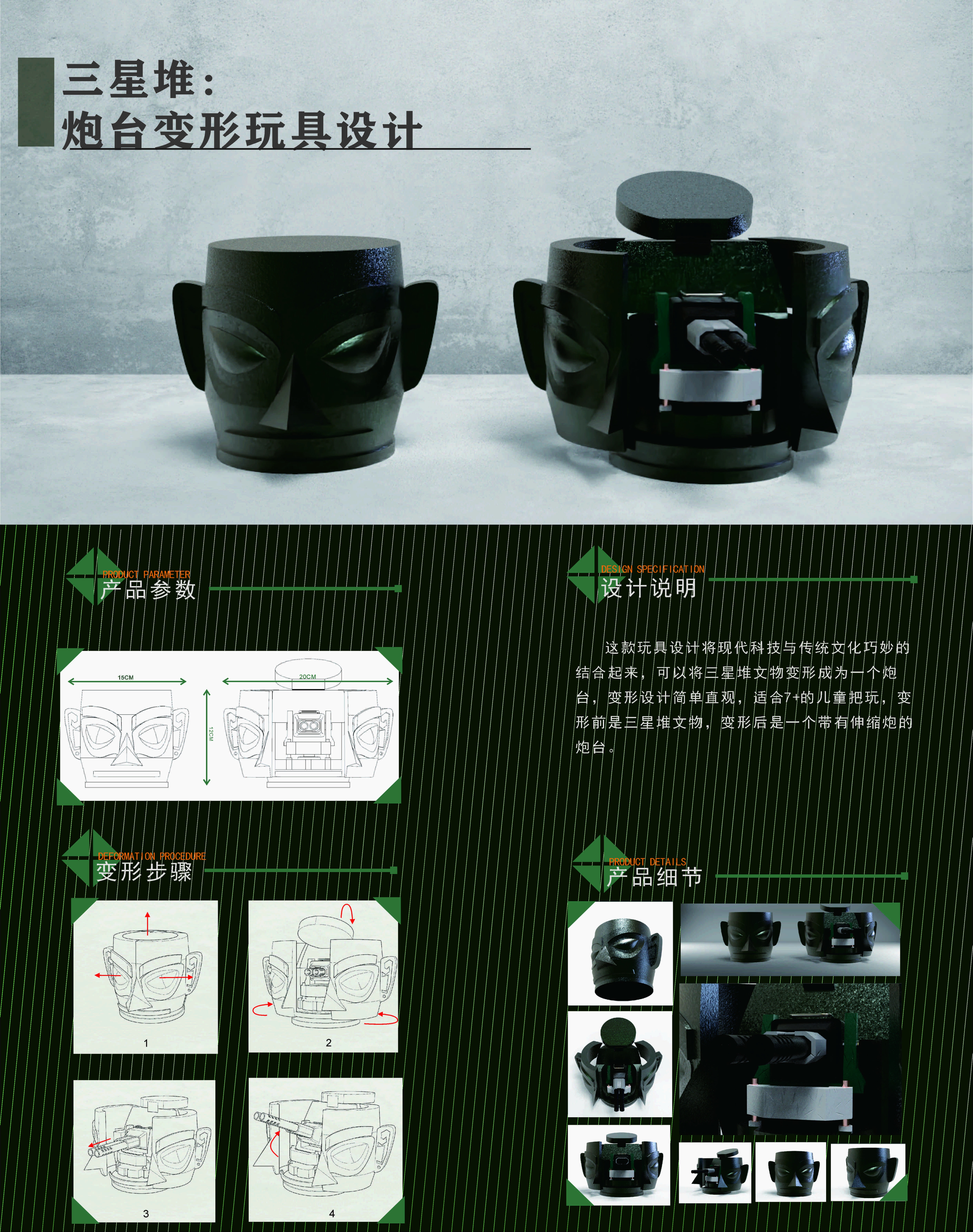 本产品汲取了三星堆文化的丰富内涵,将古代蜀国的神秘元素融入现代玩具设计之中。不仅造型美观,而且设计精巧,极富趣味性和互动性。是一款集文化、艺术、科技和互动于一体的优质玩具。它不仅能够激发孩子们的想象力和创造力,还能帮助他们了解和认识三星堆文化这一重要的文化遗产。