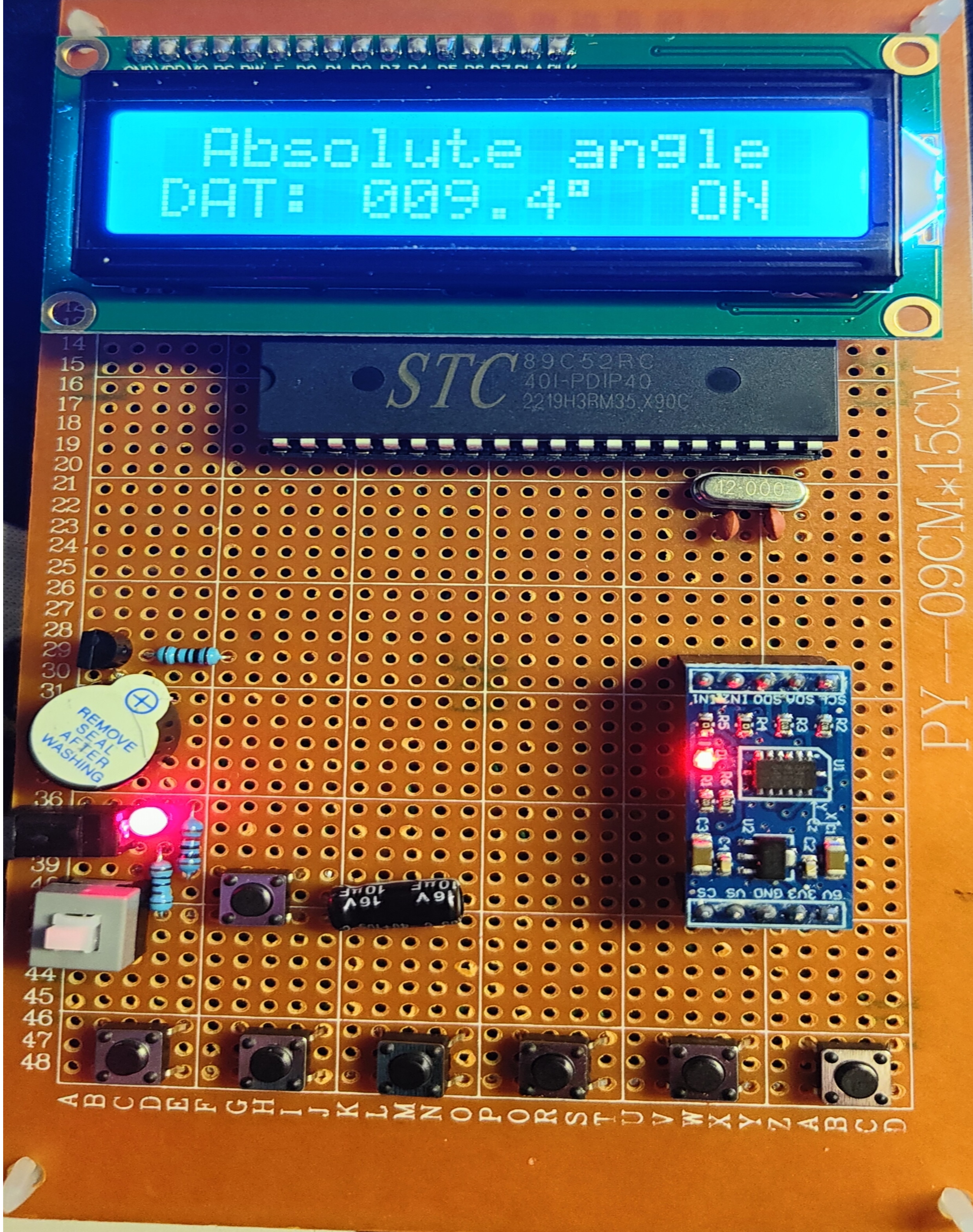 本设计是一个基于单片机的数字式倾角仪系统。该系统使用STC89C52单片机作为主控核心,使用三轴加速度传感器ADXL345对倾角进行高精度测量,并将测量结果通过LCD1602液晶屏进行实时显示,对于测量得到的倾角值超过设定阈值的情况,系统还能发出报警提示。本设计旨在提供高精度、自动化和实时性的倾角测量功能,它适用于建筑施工、地质勘探、航空航天、机械加工等多个领域,具有广泛的应用前景和实际价值。