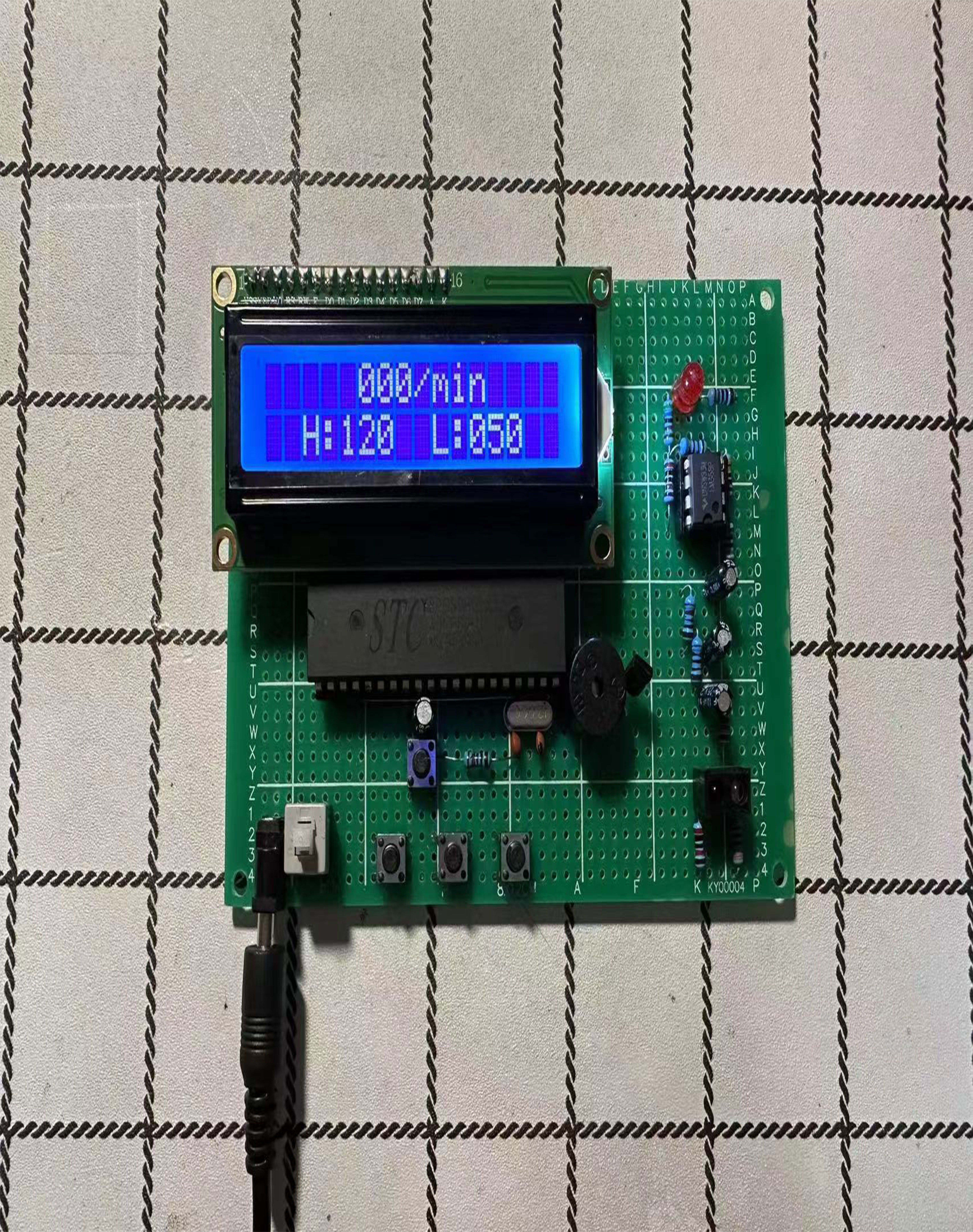 本作品是一个基于单片机的便携式智能心率监测报警系统。该系统使用STC89C52微控制器作为主控芯片,使用红外光电心率传感器来捕捉信号,使用LCD1602液晶屏作为显示系统,光电心率传感器将捕捉到的信号脉冲通过信号处理电路送到微控制器,在完成数据处理后,由LCD1602显示心率数值,当心率值超过限定值时系统将发出报警提示。它使用方便,只需将指尖轻轻放在传感器上就能实时显示心率,具有很好的实用价值。