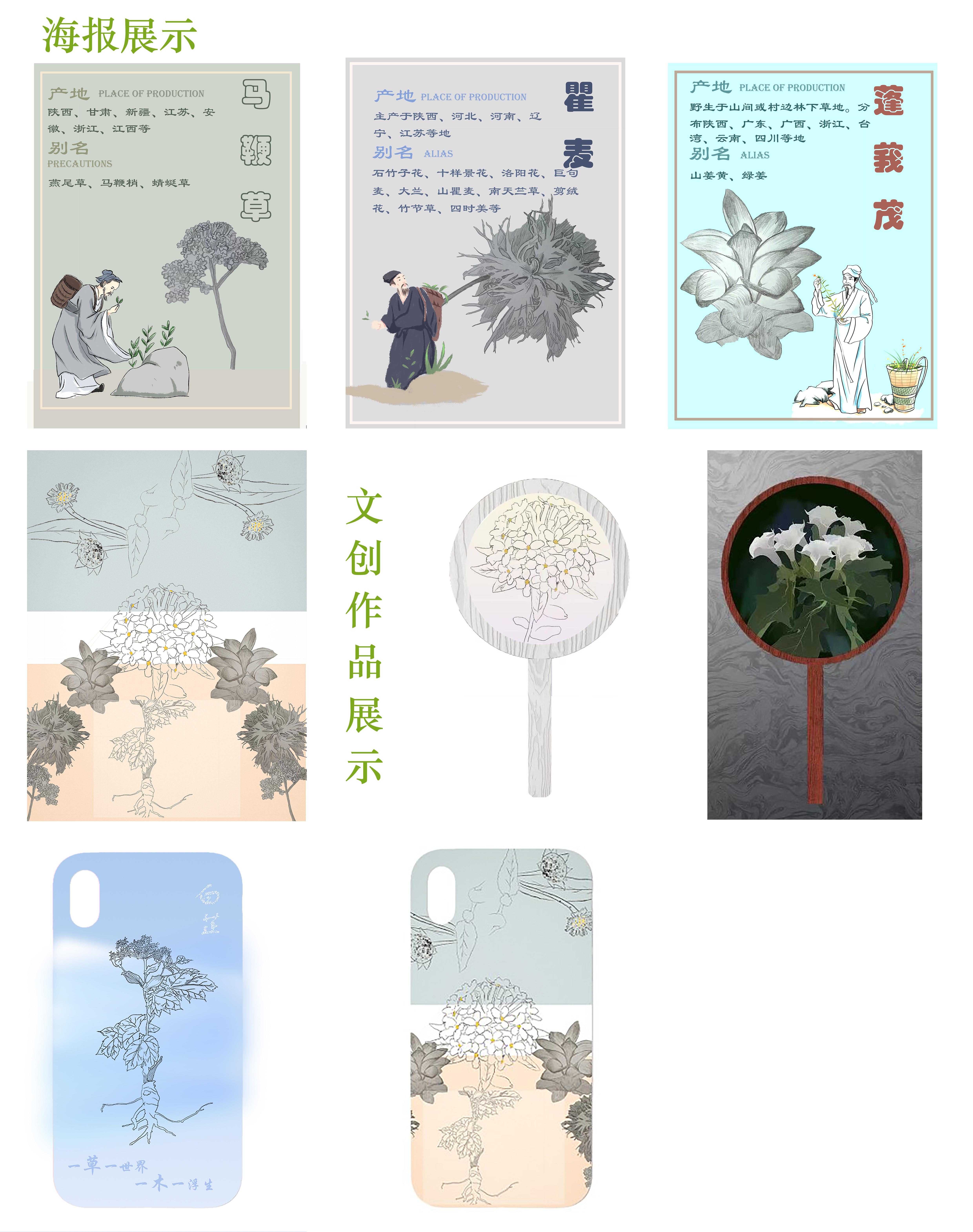 秦地无闲草,秦药俏四方。我们团队将陕西本土的草药文化与文创产品结合,意在利用实物承载本草意蕴,让更多人知道陕西本草,更有浓厚的兴趣推动力去主动了解我们三秦的本草文化。植物与色彩的拼接组合,不仅仅是视觉冲突,也是多元文化的融合交流,这正是我们创作的一大亮点。而我们正是想利用这样生动的图案,将他们呈现在手机壳、扇面等等日常生活用品中,让更多人了解和喜欢陕西文化。