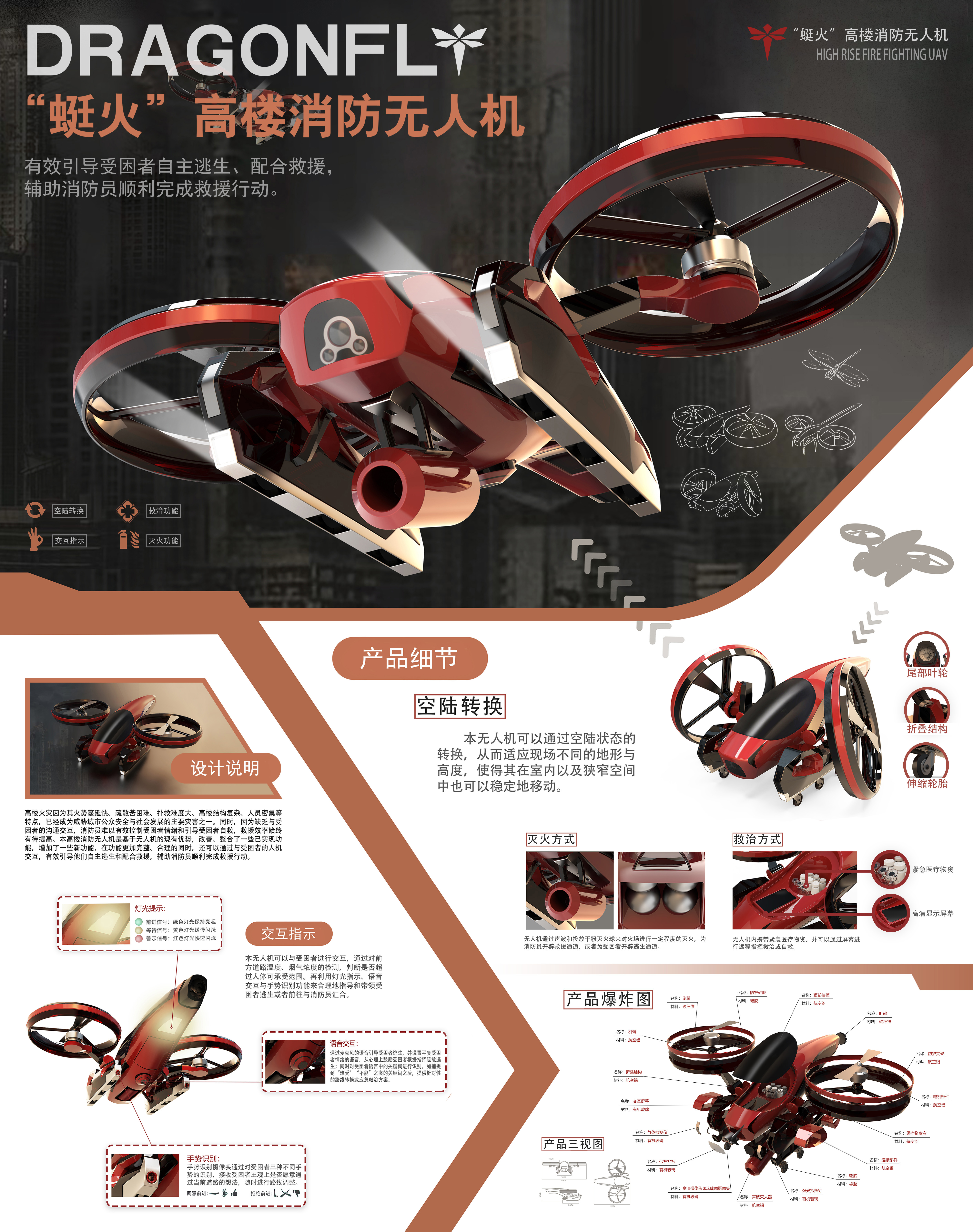 高楼火灾因为其火势蔓延快、疏散苦困难、扑救难度大、高楼结构复杂、人员密集等特点,成为威胁城市公众安全与社会发展的主要灾害之一。同时,因为缺乏与受困者的沟通交互,消防员难以有效控制受困者情绪和引导受困者自救,救援效率始终有待提高。本产品是基于无人机的现有优势,改善、整合并增加了不同功能,在功能更完整、合理的同时还可以通过与受困者的人机交互,有效引导他们自主逃生和配合救援,辅助消防员顺利完成救援行动。