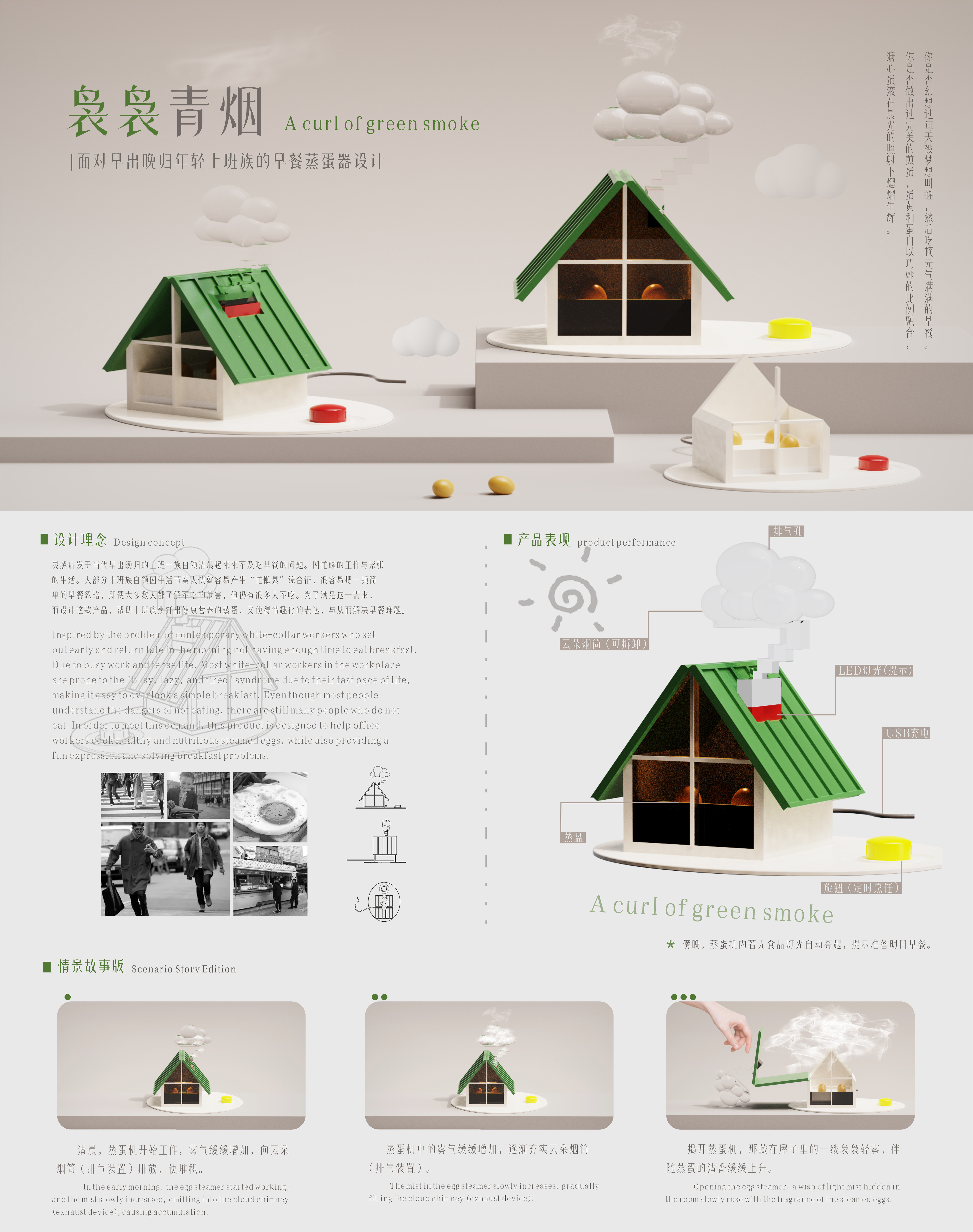 袅袅青烟——面对早出晚归年轻上班族的早餐蒸蛋器设计