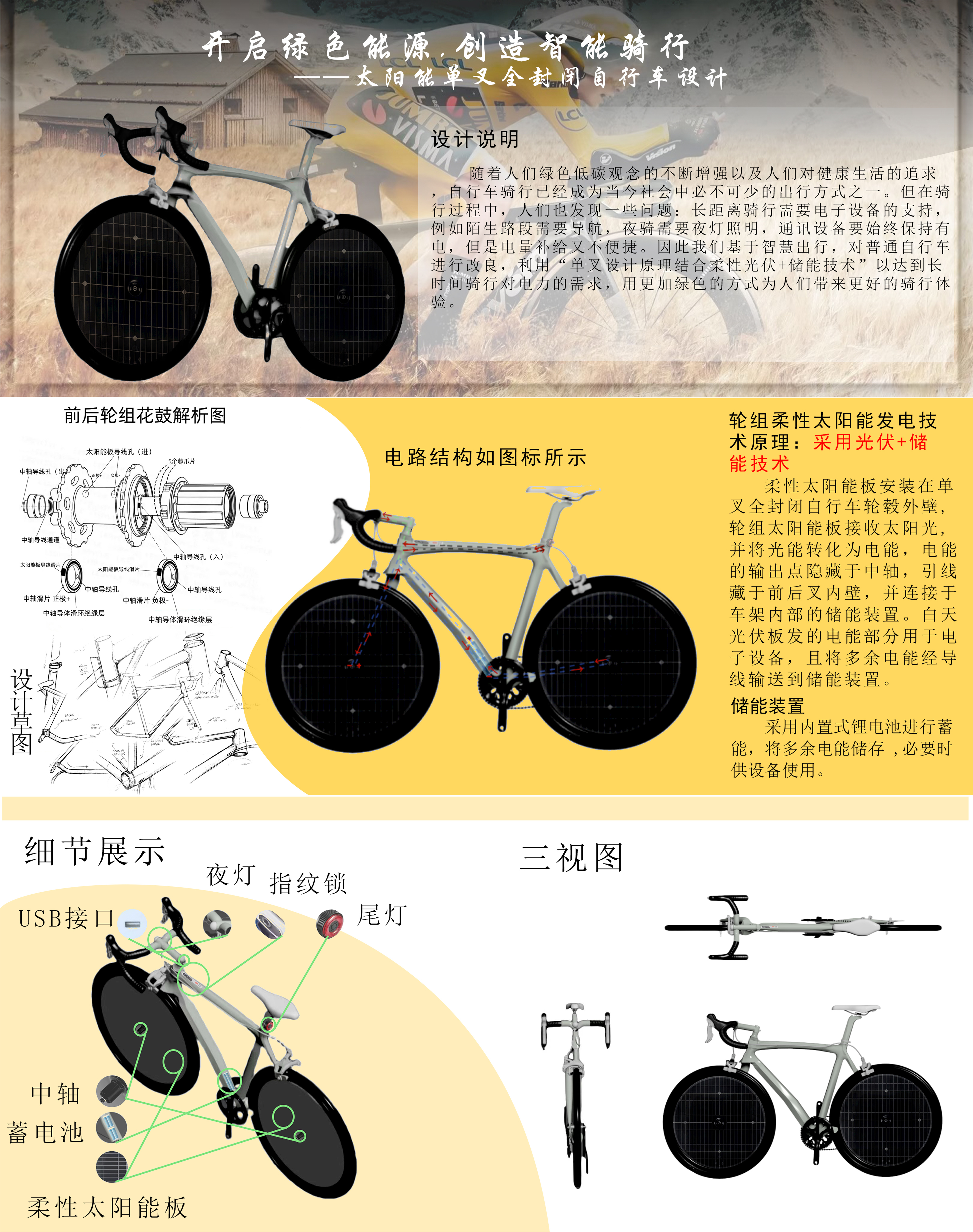 开启绿色能源,创造智能骑行— —太阳能单叉全封闭自行车